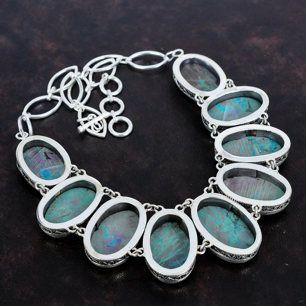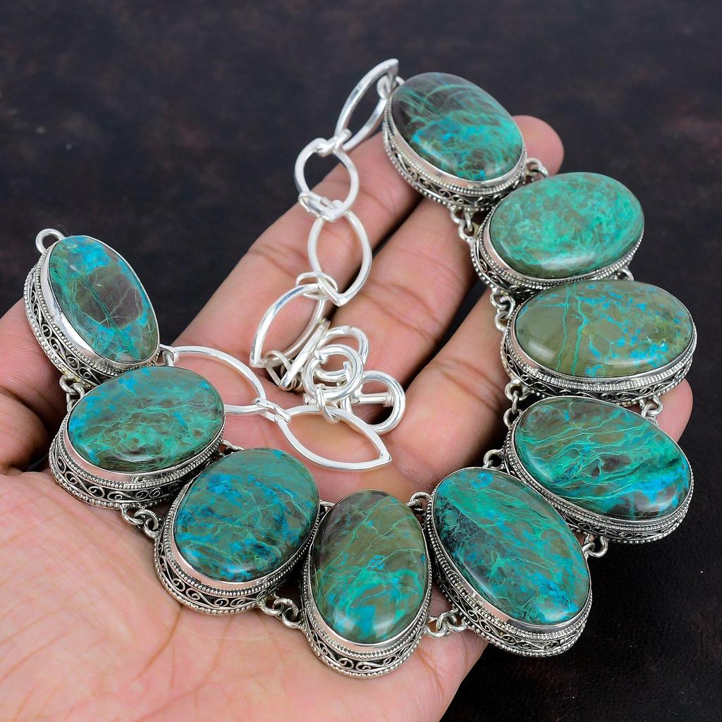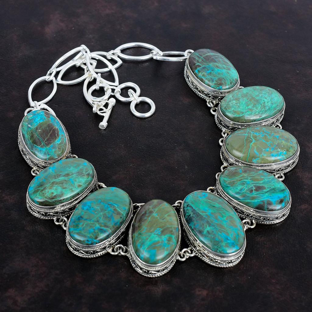 Ожерелье из драгоценных камней хризоколла, винтажное дизайнерское ювелирное изделие, ожерелье из стерлингового серебра 925 пробы, регулируемое ожерелье из цепочки, ожерелье ручной работы, подарки для жены