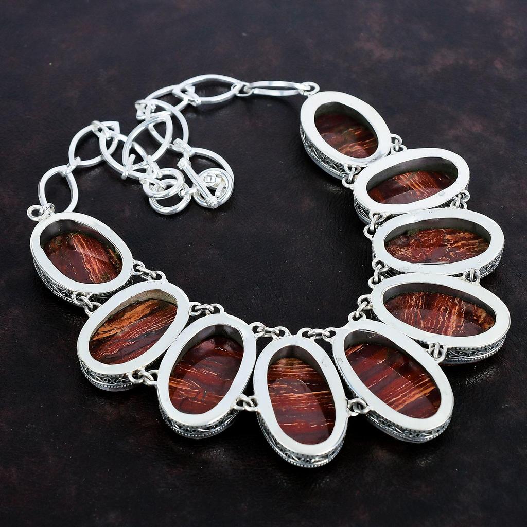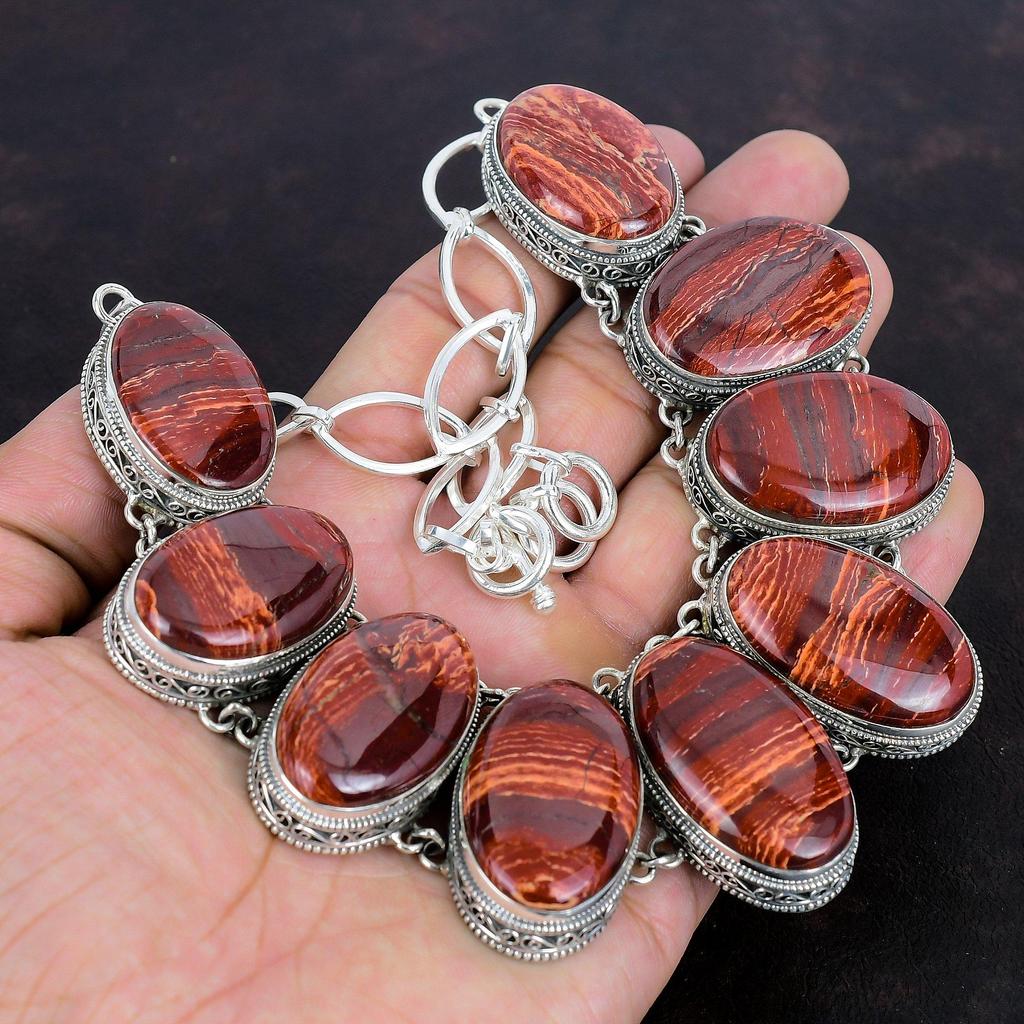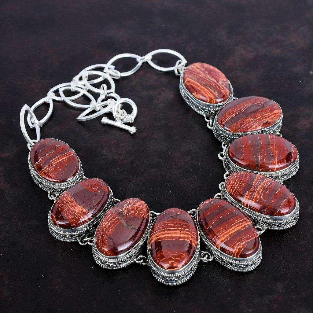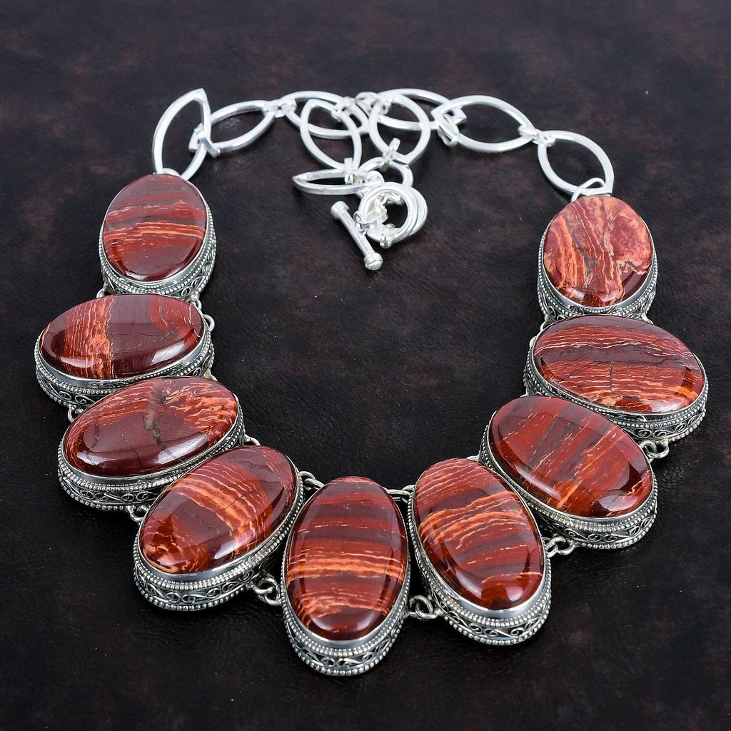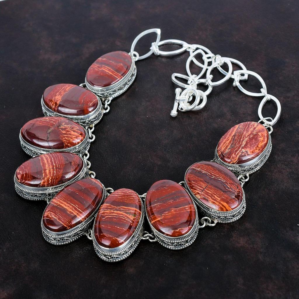 Ожерелье из красного змеиного яшмового камня, ожерелье ручной работы, винтажные ювелирные изделия, ожерелье из стерлингового серебра 925 пробы, регулируемое ожерелье-цепочка, подарок для нее
