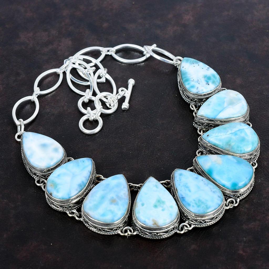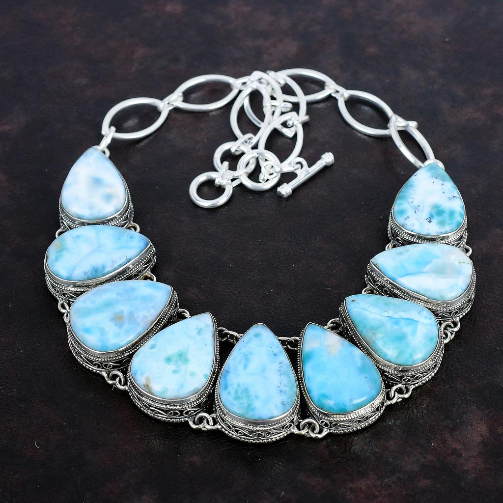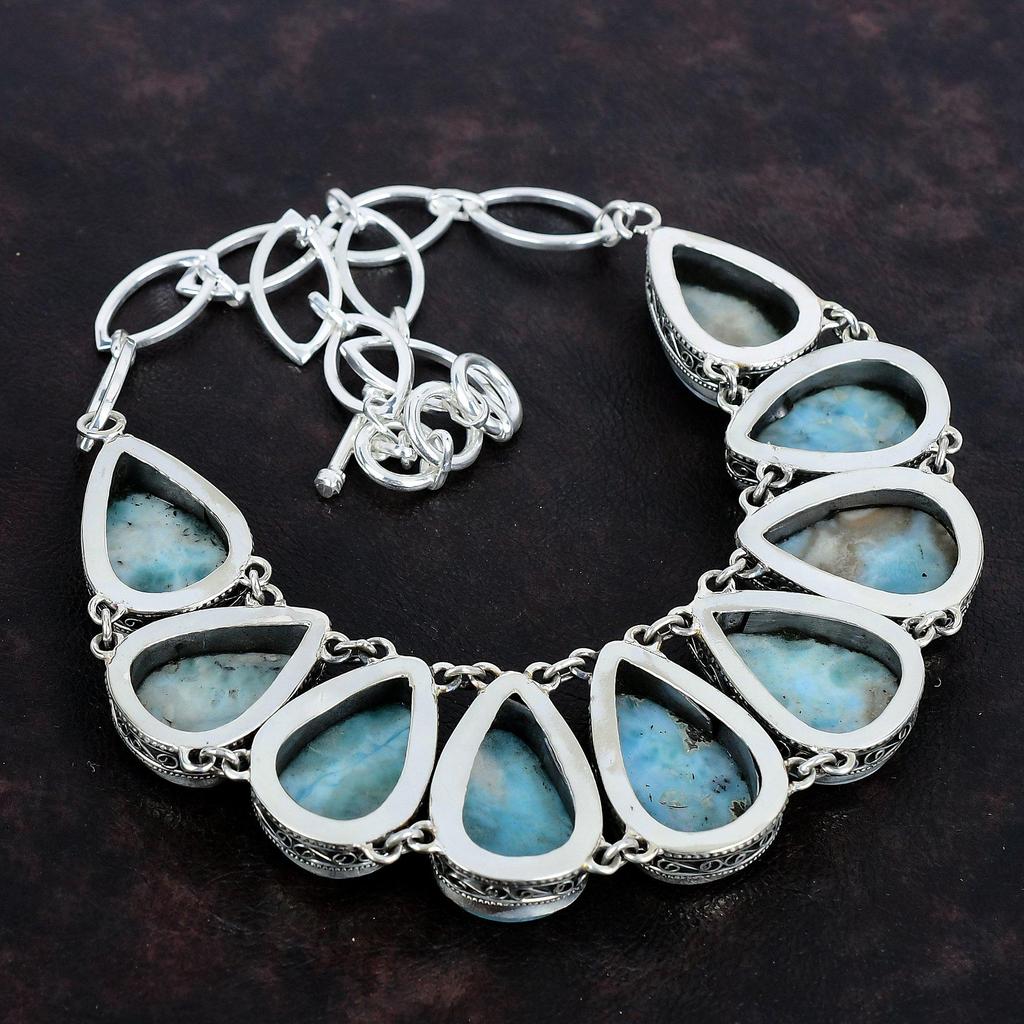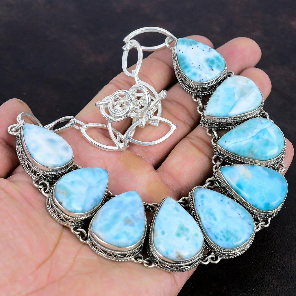 Ожерелье из ларимара, настоящее ожерелье из драгоценных камней, ожерелье из стерлингового серебра 925 пробы, винтажное ожерелье, регулируемая цепочка, ювелирные изделия ручной работы для подарка