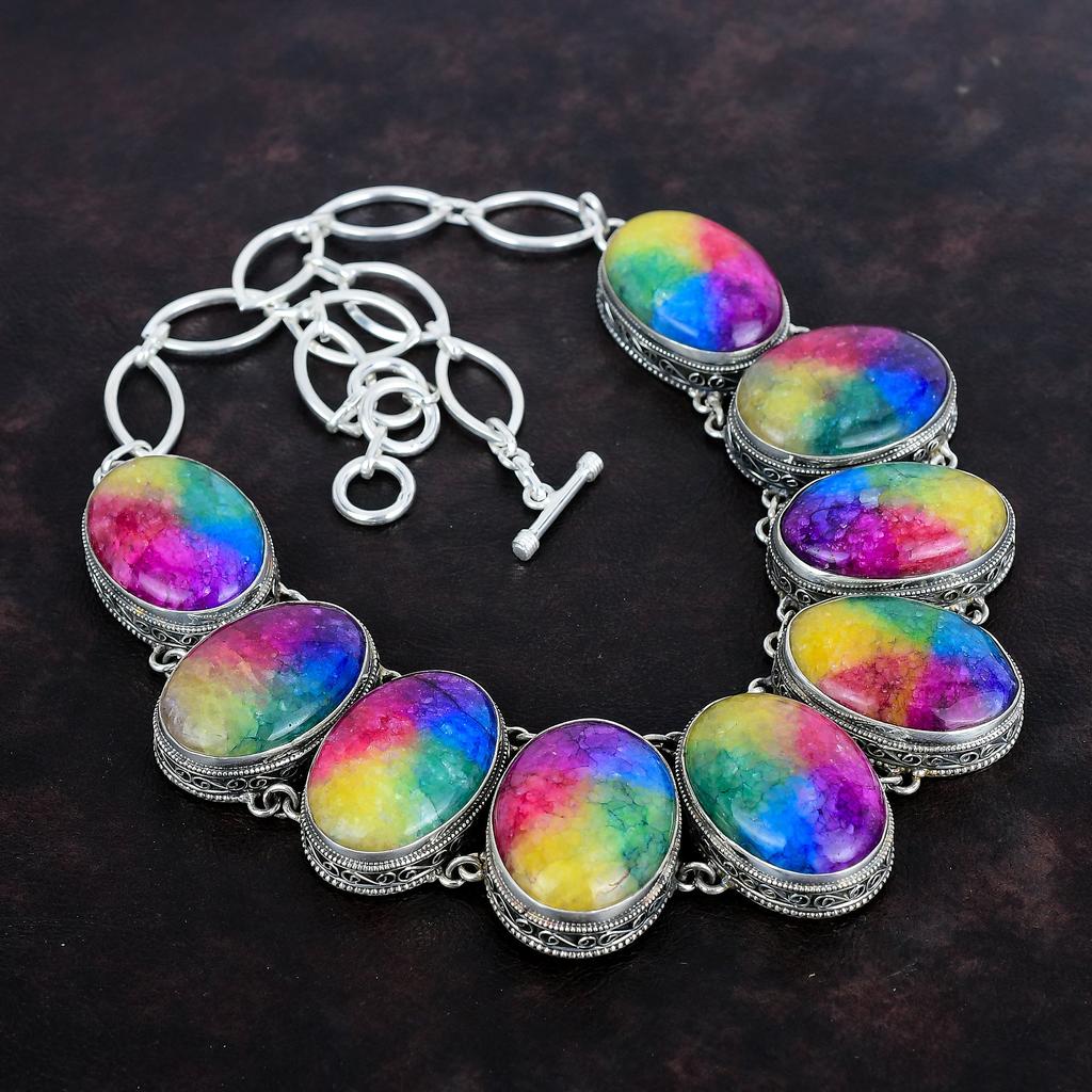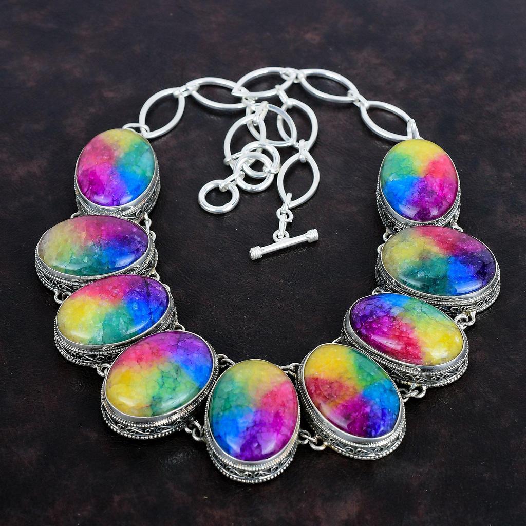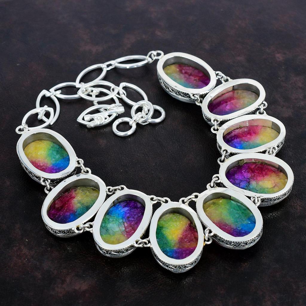 Радужное солнечное кварцевое ожерелье Druzy из стерлингового серебра 925 пробы, регулируемое ожерелье из цепочки, винтажные украшения ручной работы, изящное ожерелье из драгоценных камней