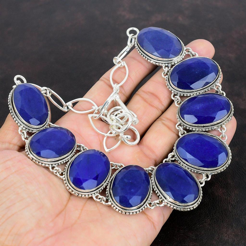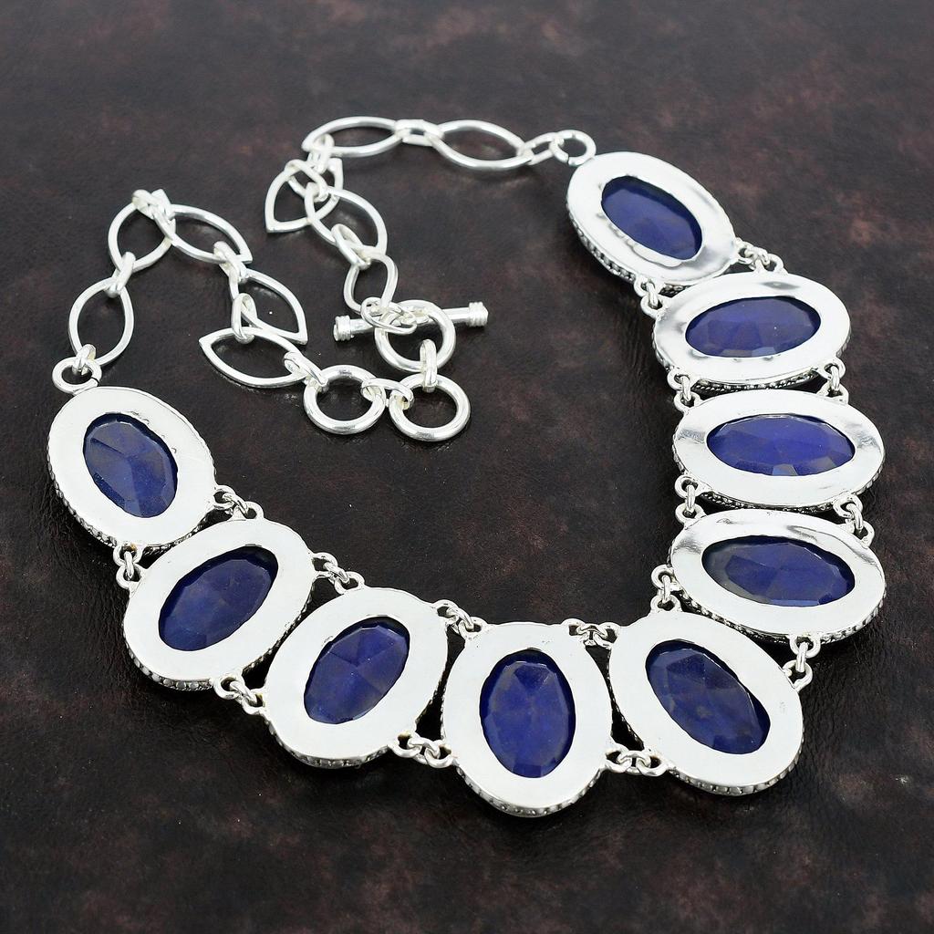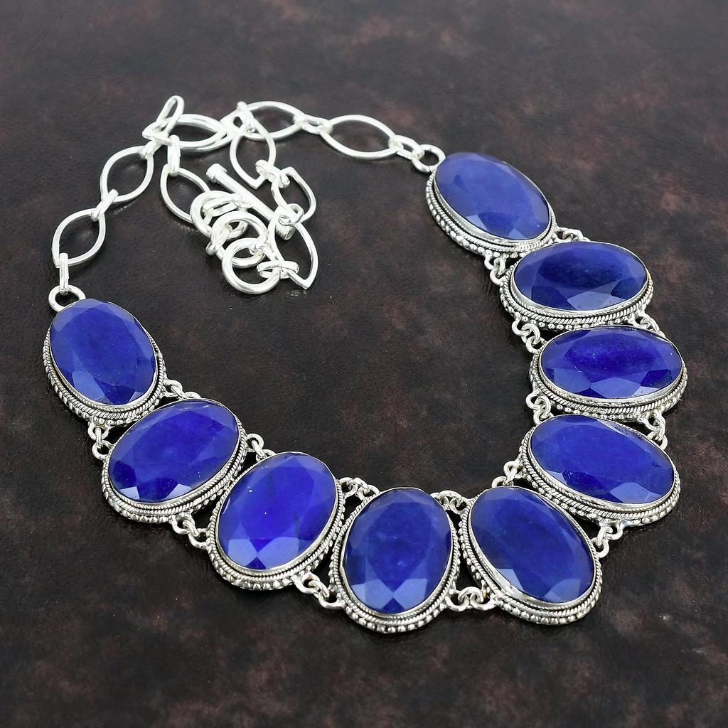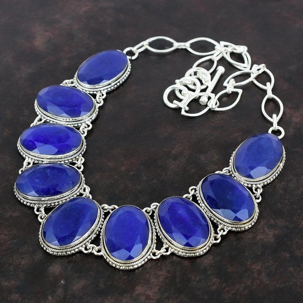 Ожерелье с граненым синим сапфиром, ювелирные изделия из драгоценных камней, винтажное ожерелье из стерлингового серебра 925 пробы, регулируемая цепочка, ожерелье ручной работы для матери