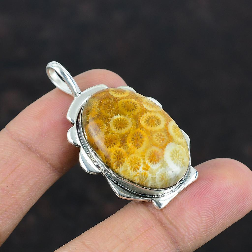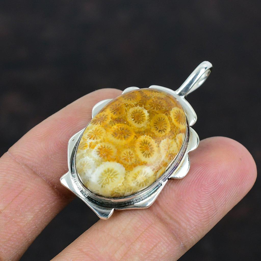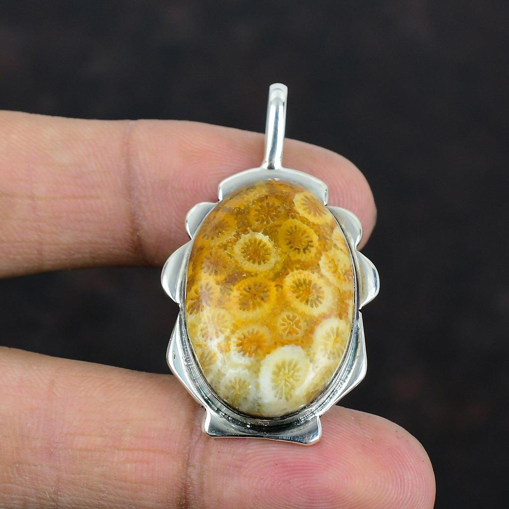 Подвеска из ископаемого коралла, ювелирные изделия из натурального драгоценного камня, уникальная подвеска из стерлингового серебра 925 пробы, подвеска из ископаемого коралла, ювелирные изделия ручной работы, свадебные подарки