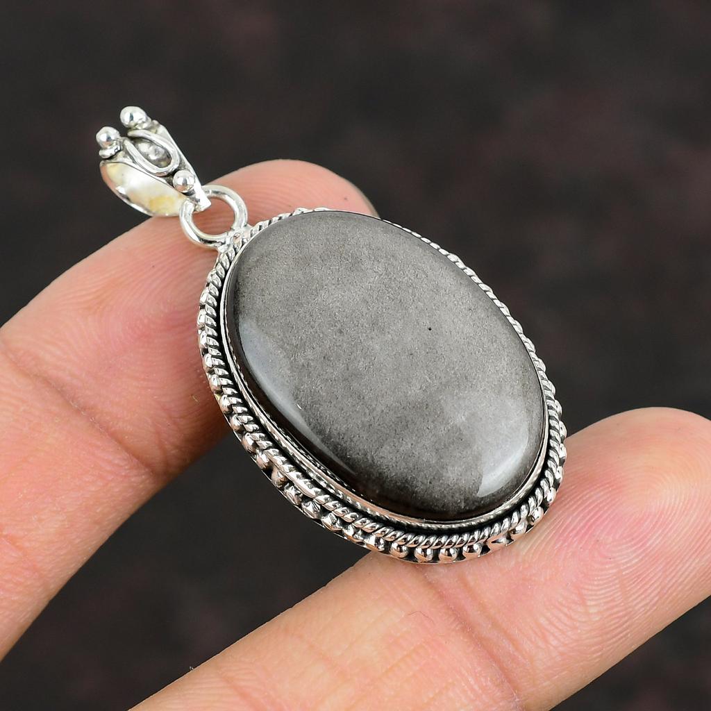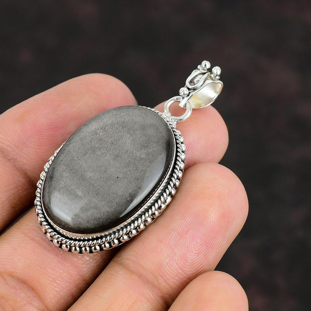 Серебряный блестящий обсидиановый кулон, оригинальный драгоценный камень, элегантное ювелирное изделие, кулон из стерлингового серебра 925 пробы, ручная работа, абсолютно новый кулон, подарки для нее