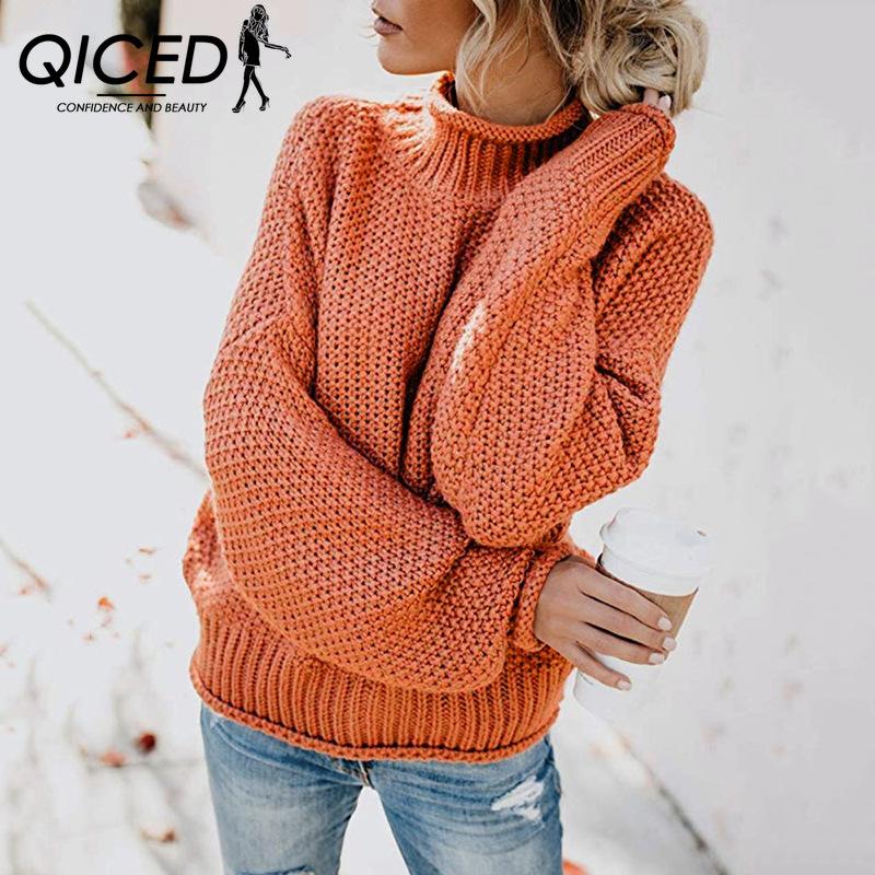 QICED Осень и Зима Трикотаж Женский Толстой Вязки Водолазка Свитер Женский — купить товар онлайн с бесплатной доставкой по всему миру!