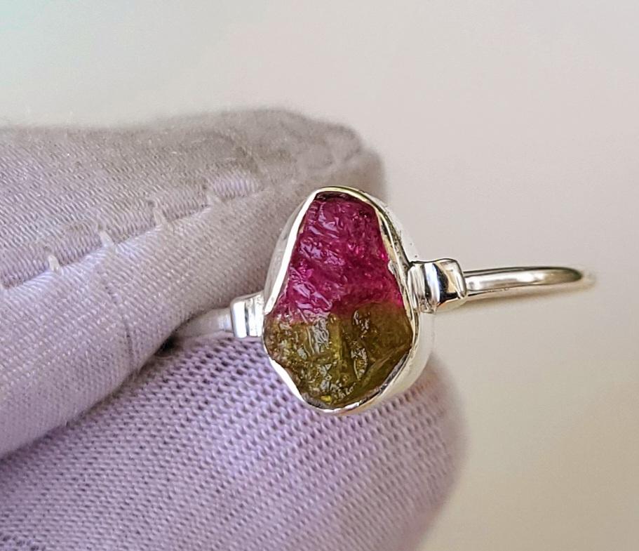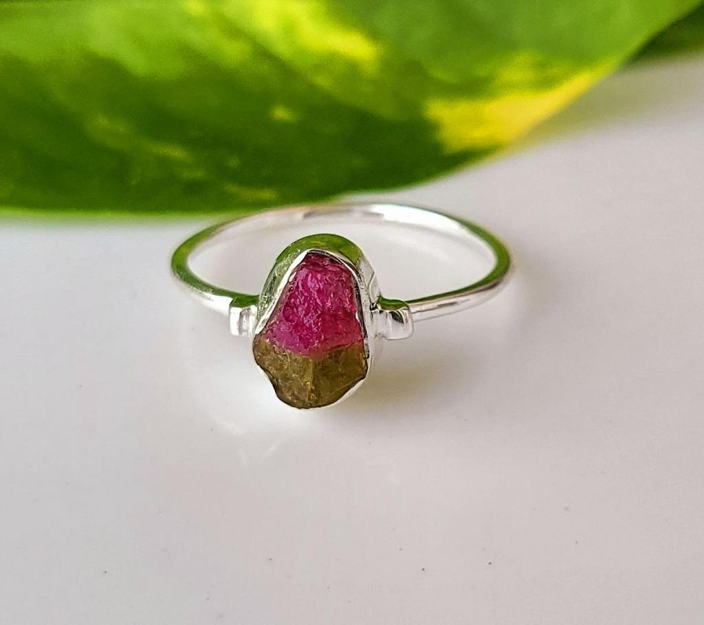 Кольцо из серебра 925 пробы с необработанным арбузным турмалином, размер 7,75, подарок для нее
