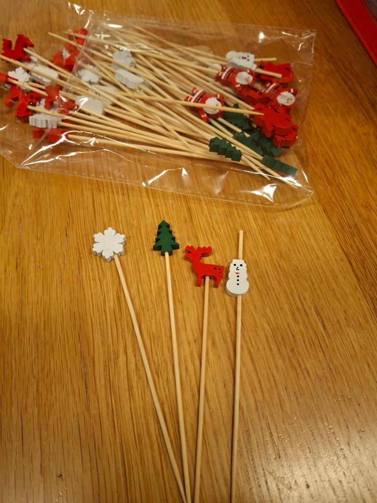 Это шпажки доя фруктов,овощей, бутербродов..много что можно на них нарисовать Они с разными наконечниками- снежинки, олени,ёлочки и Санта Клаусы
