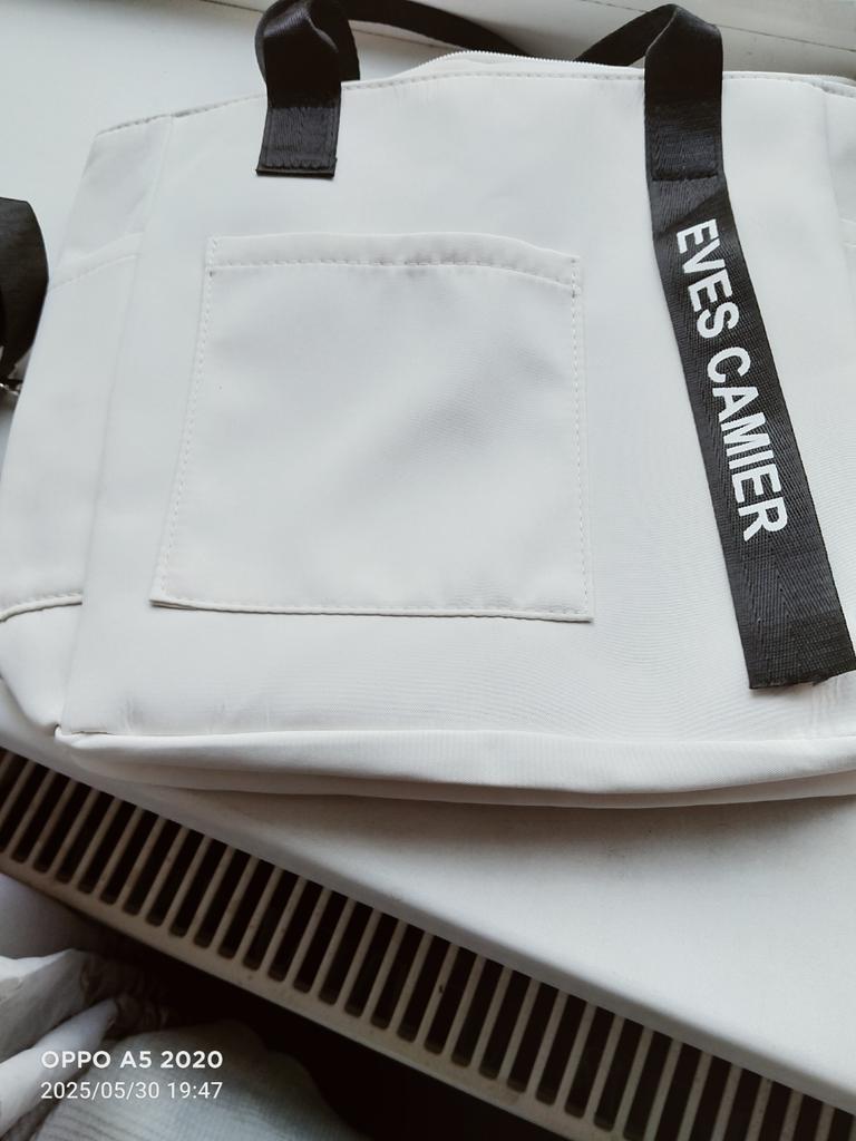 Пришла вдвое сложенная, есть заломы, небольшой запах, будет проветриваться. Ремень все таки коротковат, если носить на плече, сами ручки и вся сумка пошита как то хлипко. Большая, вместительная, внутри просто один боковой кармашек. Боковые карманы норм, можно много вместить. Молния работает.