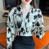 Осенняя мода 2024 года, шифоновая блузка с длинным рукавом и V-образным вырезом для офиса, женская рубашка с принтом, женские топы, блузки, рубашки J498
