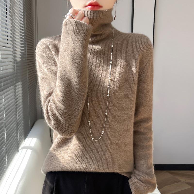 INDFS Женская мода Повседневный Осень Зима Однотонный Принт Длинный Рукав Высокий Воротник Свитера