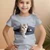 Одежда для девочек с коротким рукавом Детская одежда от 2 до 8 лет Цельные футболки с рисунком кота Кавайные топы Летняя одежда для мальчиков