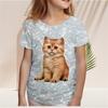 Детская футболка для девочек, пижамы с короткими рукавами и круглым вырезом с градиентными пайетками Kawaii Cat для детей, одежда для девочек от 2 до 7 лет, футболка