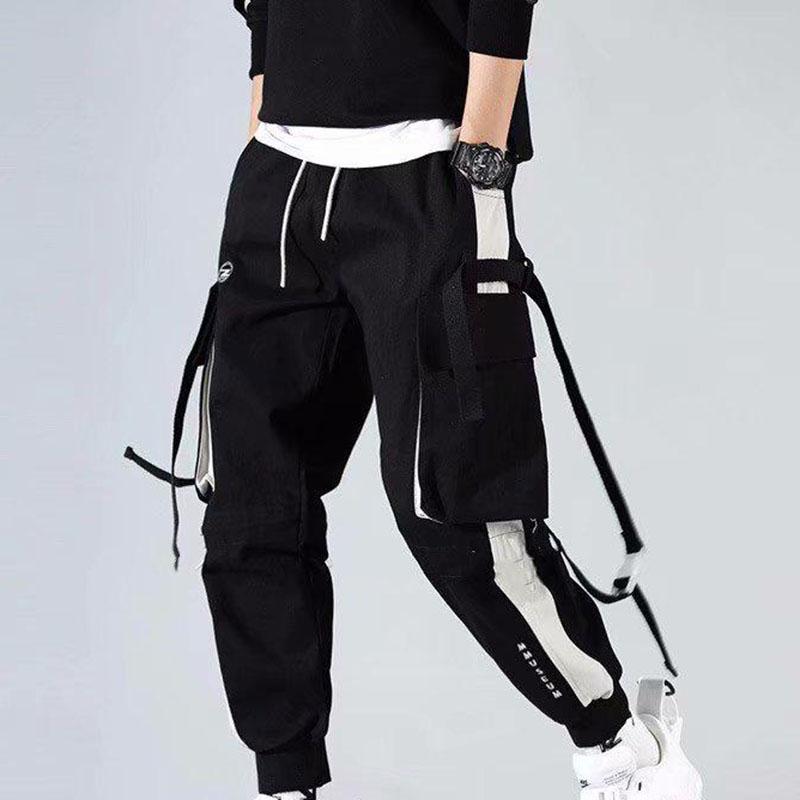 Женские и мужские брюки-карго с карманами на ленте, беговые брюки с эластичной резинкой на талии, уличная одежда в стиле Харадзюку, хлопковые брюки в стиле панк в стиле панк