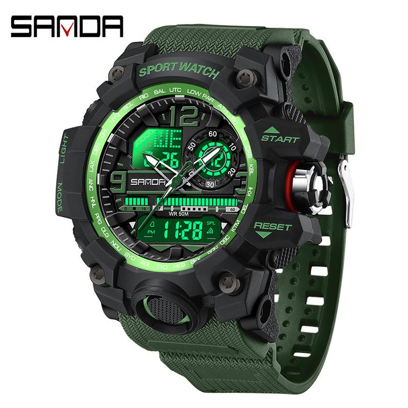 SANDA Водонепроницаемые электронные часы Многофункциональные светящиеся часы с будильником