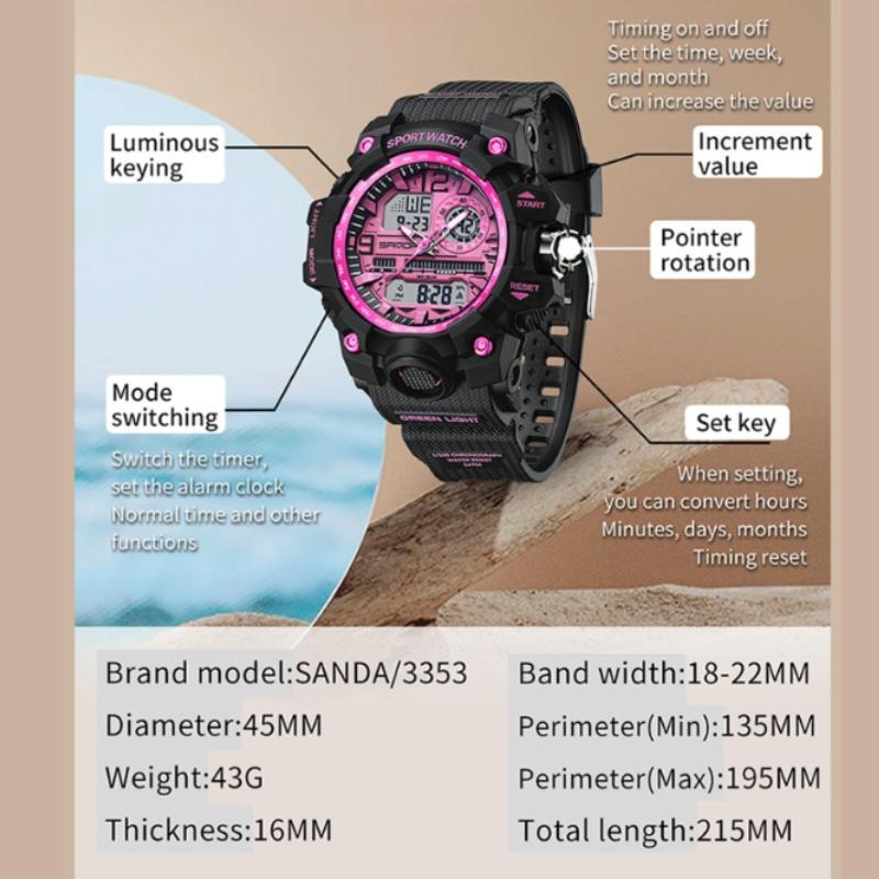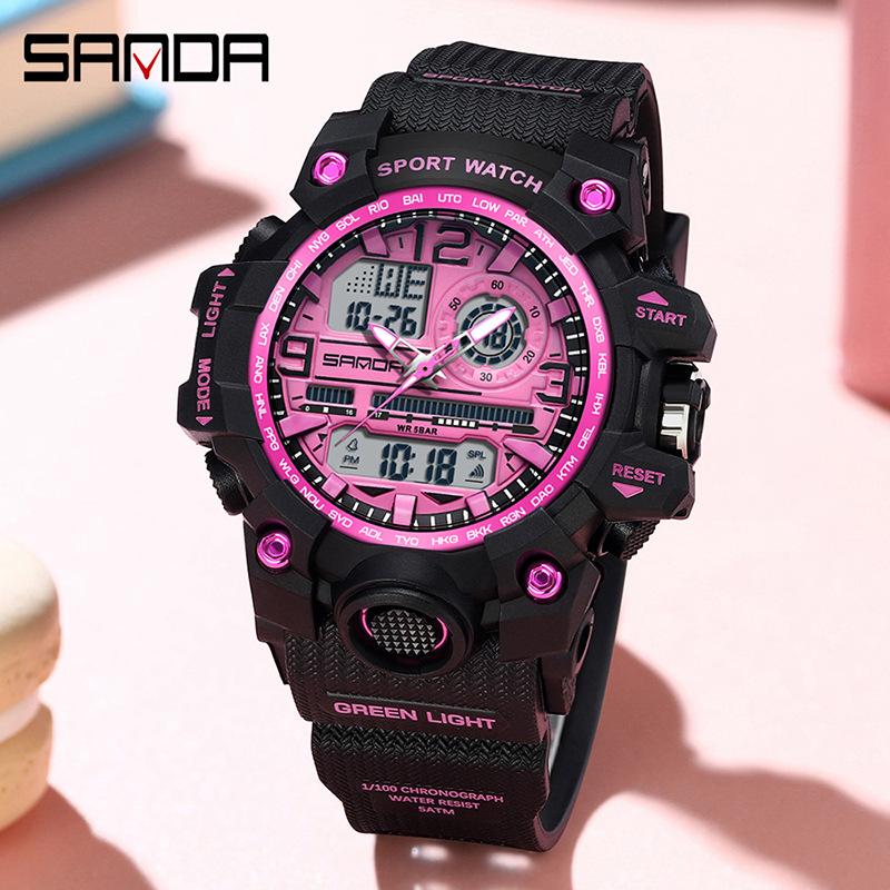 SANDA Водонепроницаемые электронные часы Многофункциональные светящиеся часы с будильником