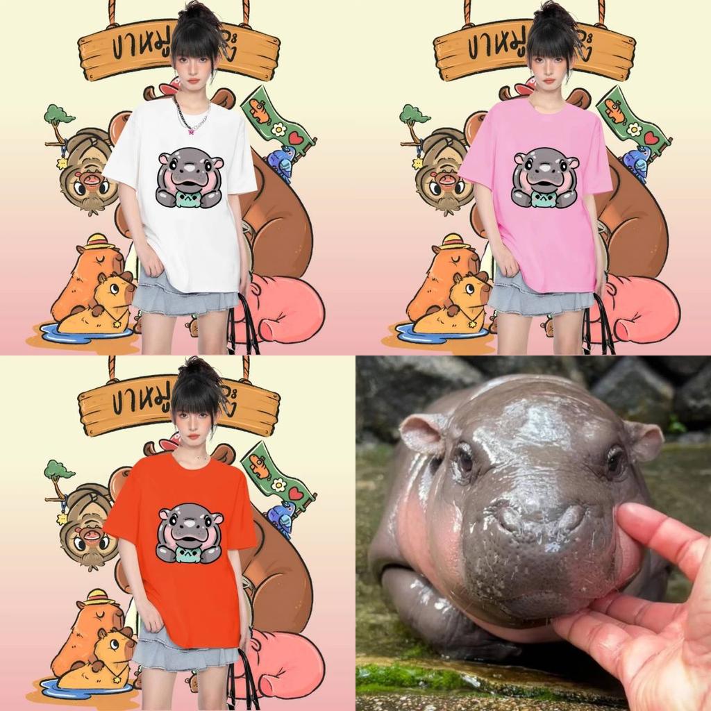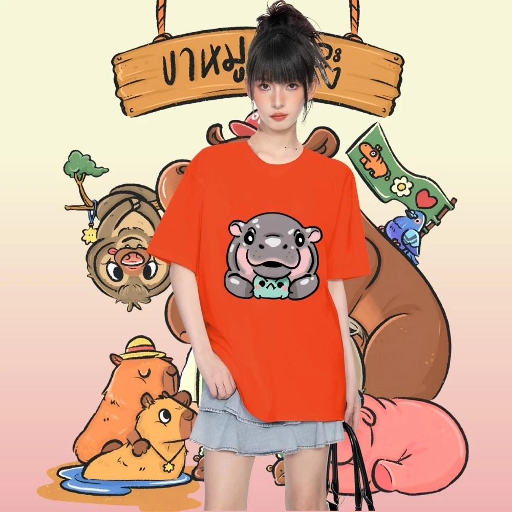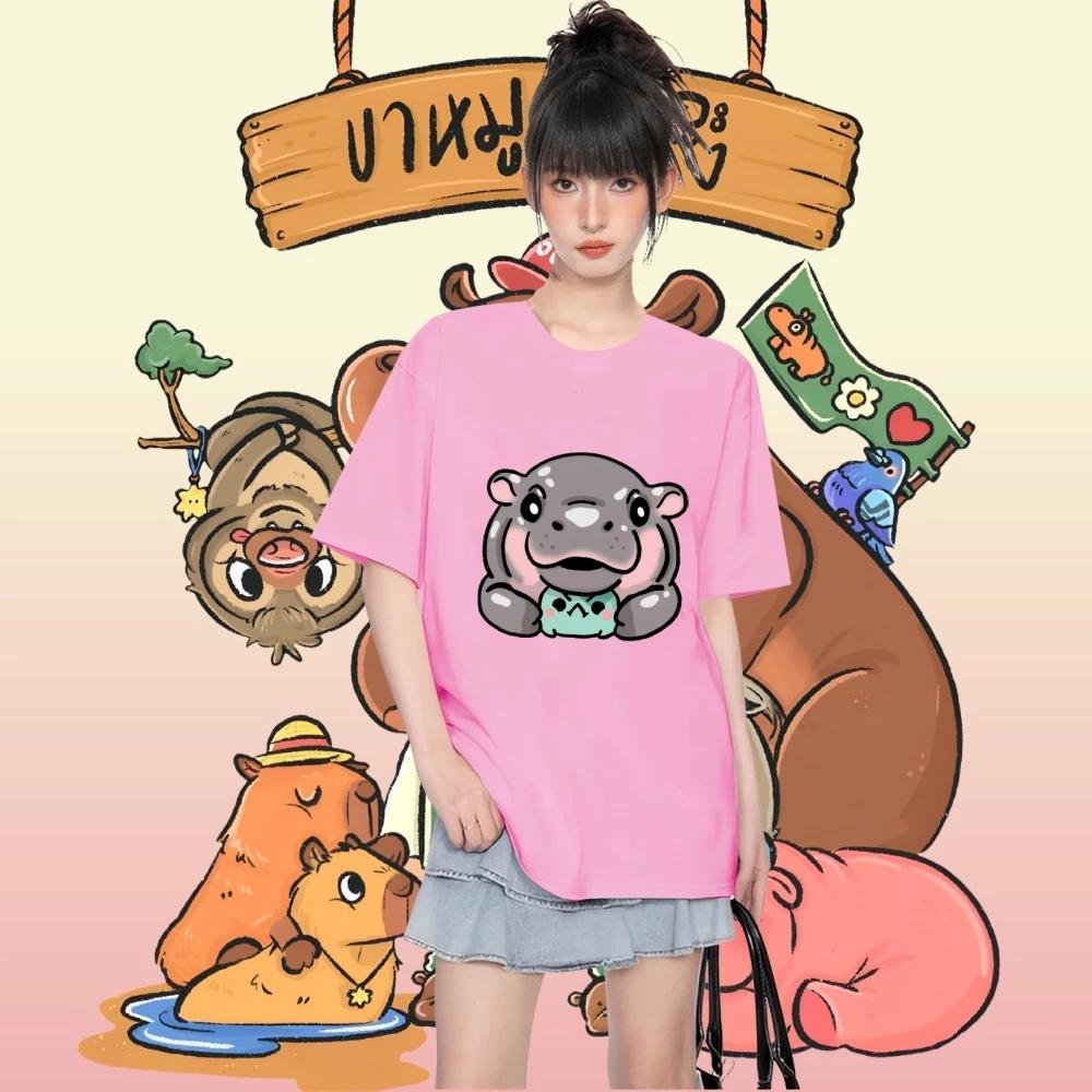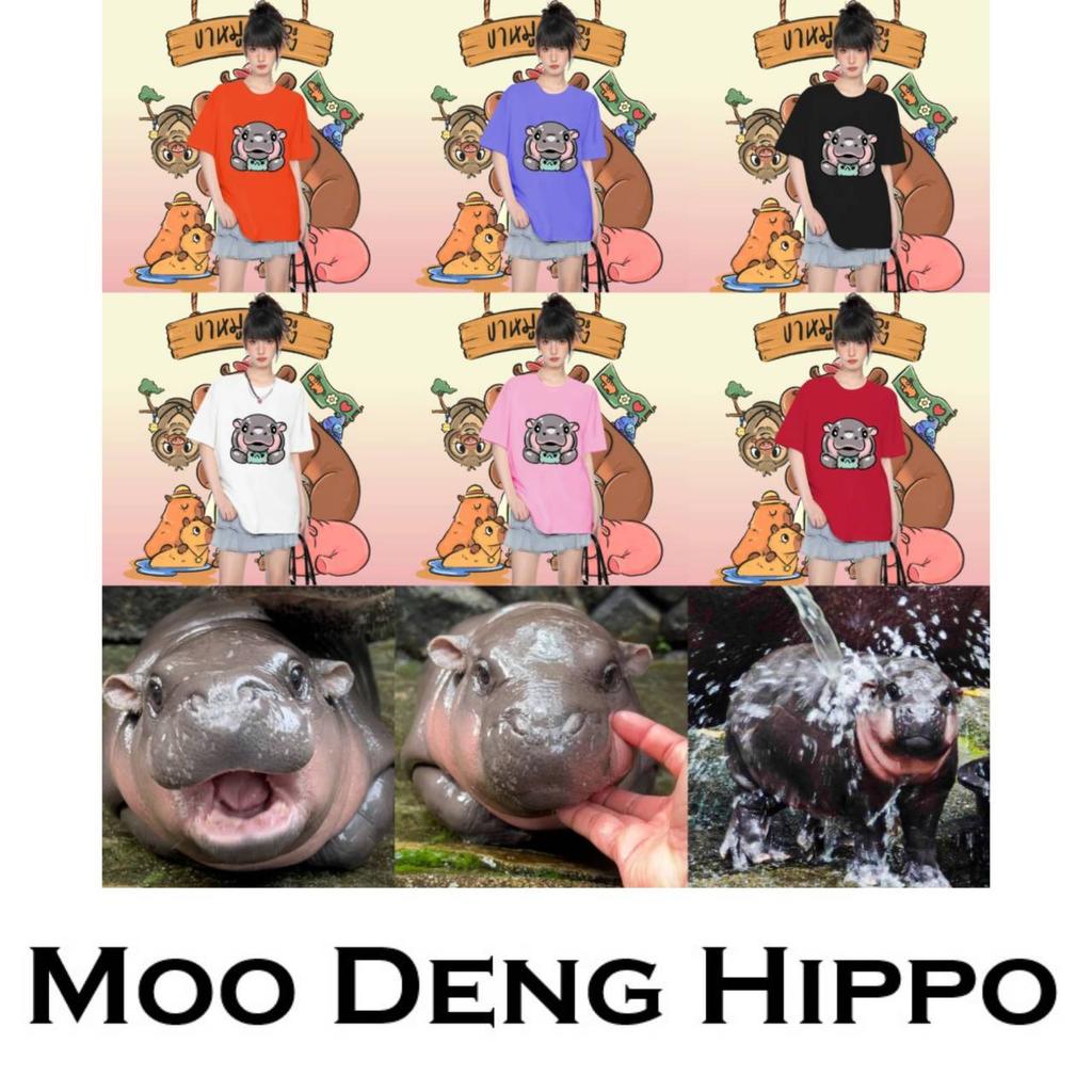 Футболка Moo Deng Tiny Baby Hippo Star Thailand Cute Pygmy Hippo Unisex для мужчин и женщин с принтом и круглым вырезом