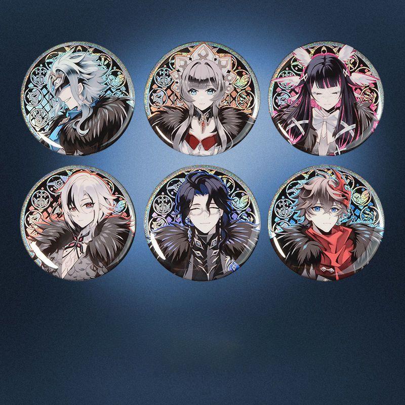 58 мм броши Genshin Impact Fatui, жестяные булавки с изысканным дизайном Arlecchino Childe Dottore, идеально подходят для значков и украшений для косплея