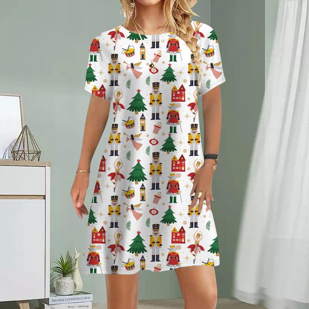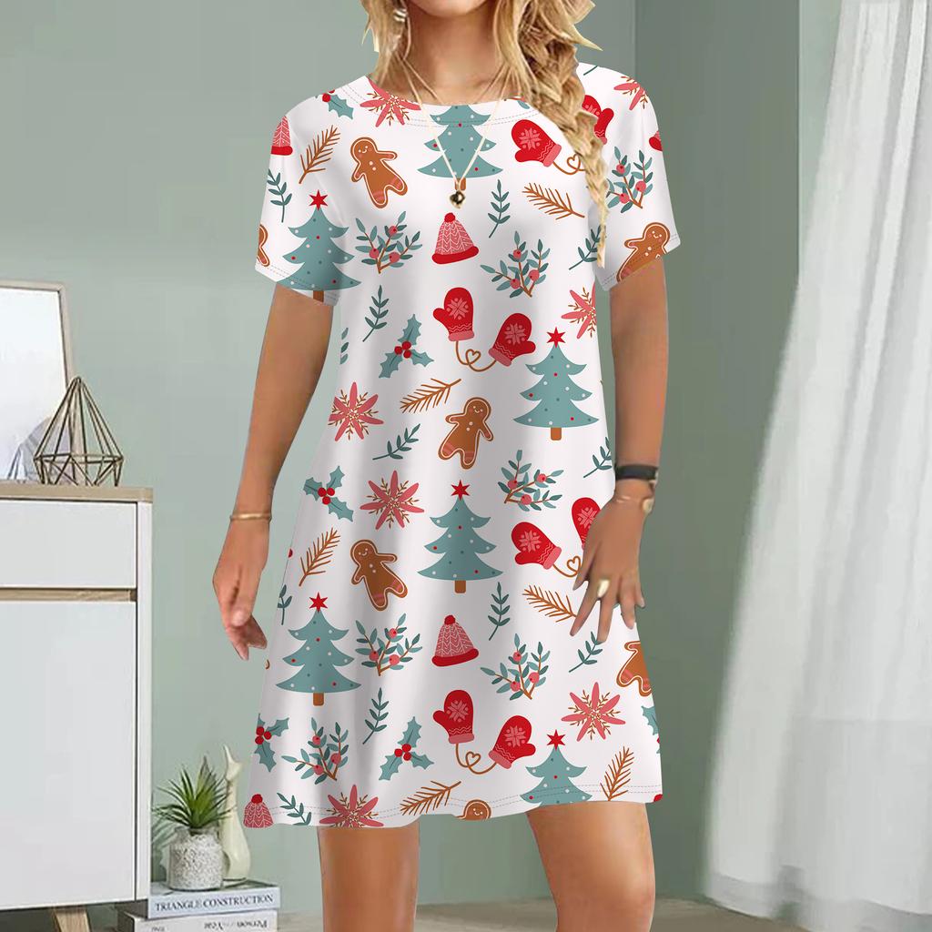 Женское повседневное платье Летние платья с принтом из стекла для женщин Платье с круглым вырезом и коротким рукавом Плюс Размер