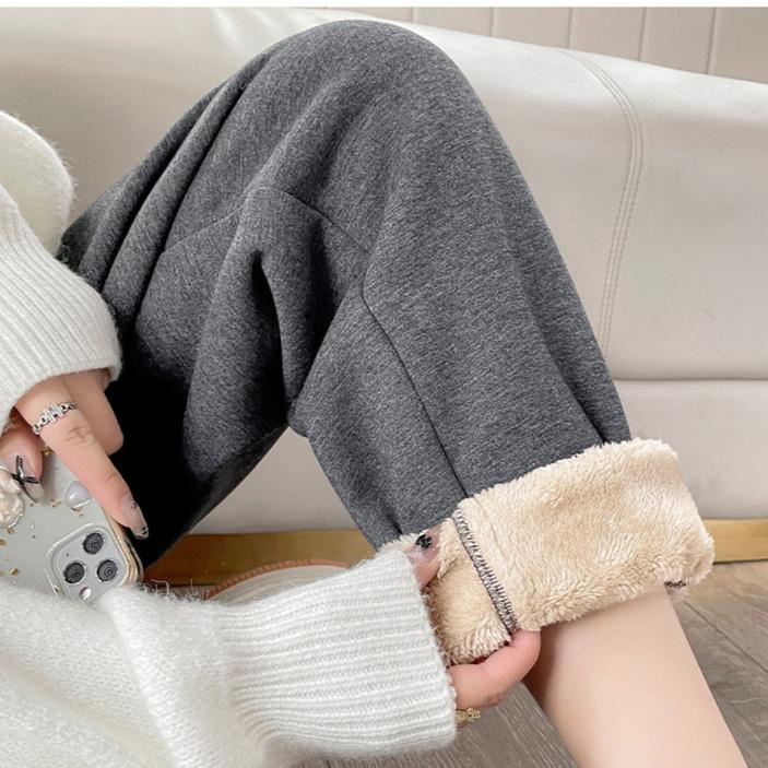 Теплые повседневные спортивные брюки из овечьей шерсти для женщин, зимние хлопковые брюки с толстым флисом, завязанные на талии брюки Harun