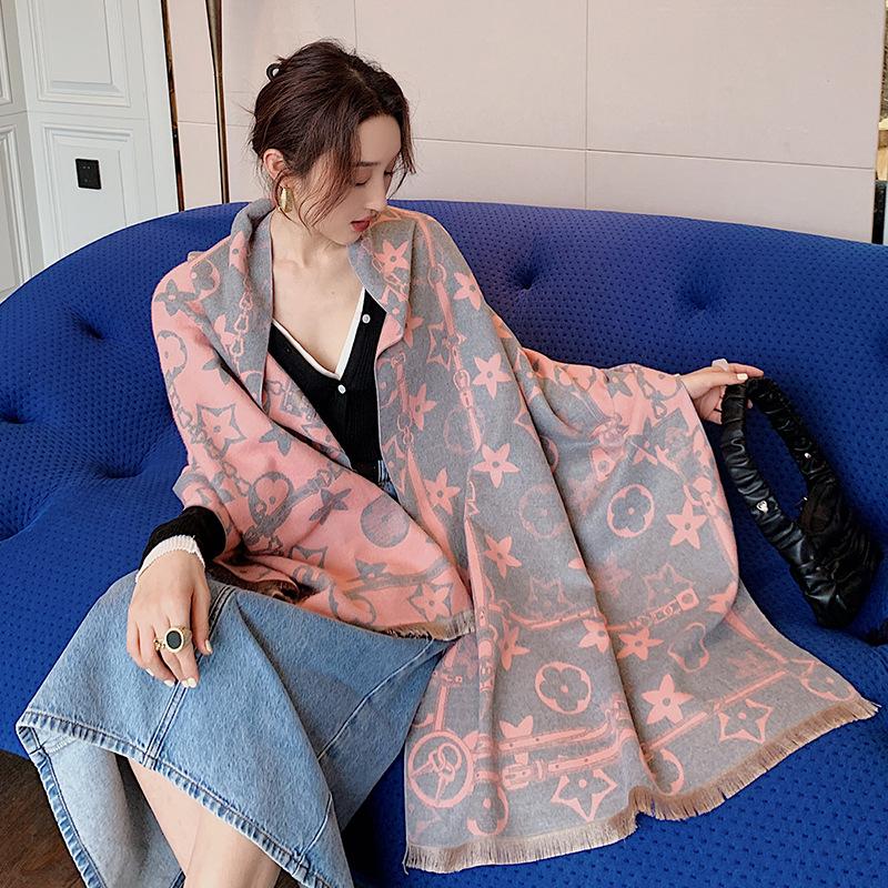 Осенне-зимний теплый шарф, женский зимний искусственный кашемировый теплый утолщенный шарф-цепочка, шаль двойного назначения
