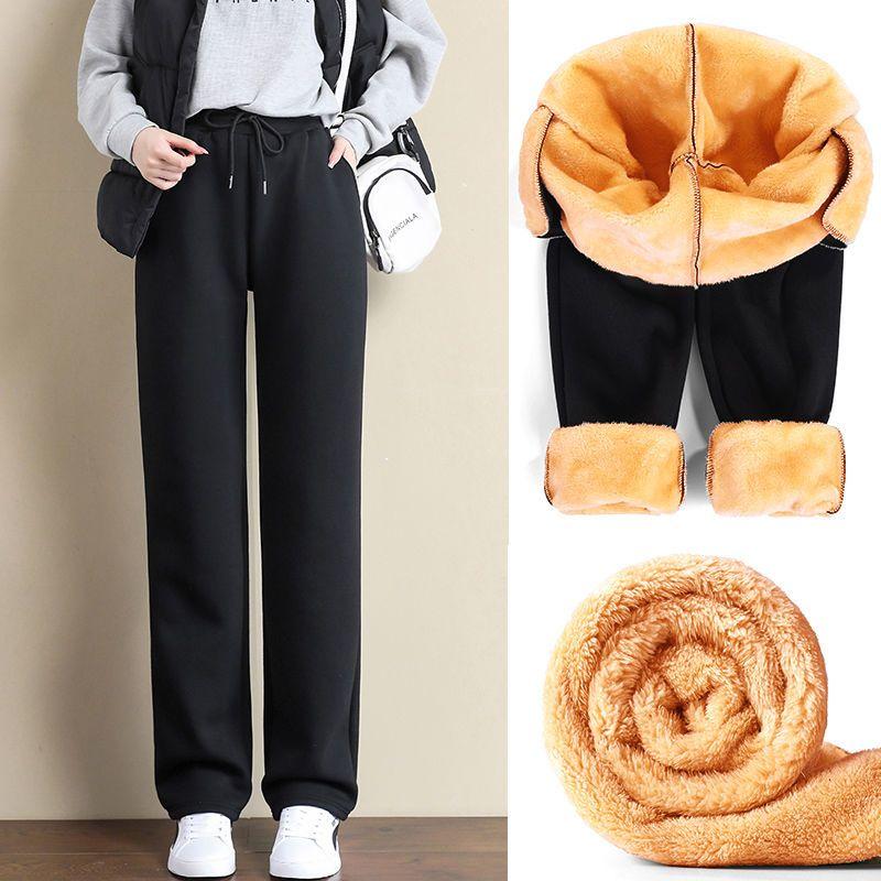 Осенне-зимние теплые брюки из ягненка, женские повседневные свободные широкие утепленные брюки, женские уличные прямые флисовые брюки — купить товар онлайн с бесплатной доставкой по всему миру!