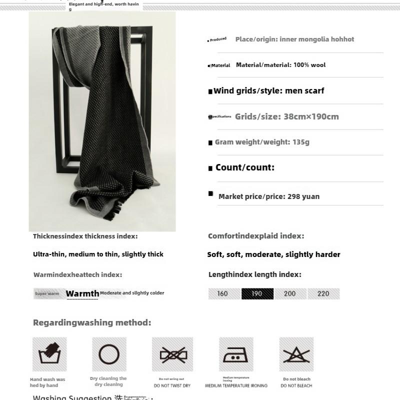 Деловой мужской шарф из чистой шерсти в горошек, теплый кашемировый шарф на осень и зиму