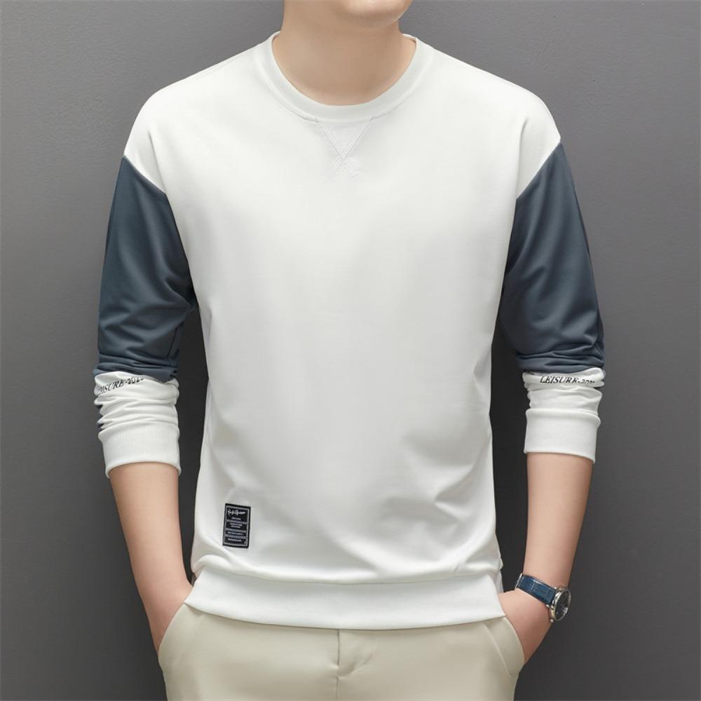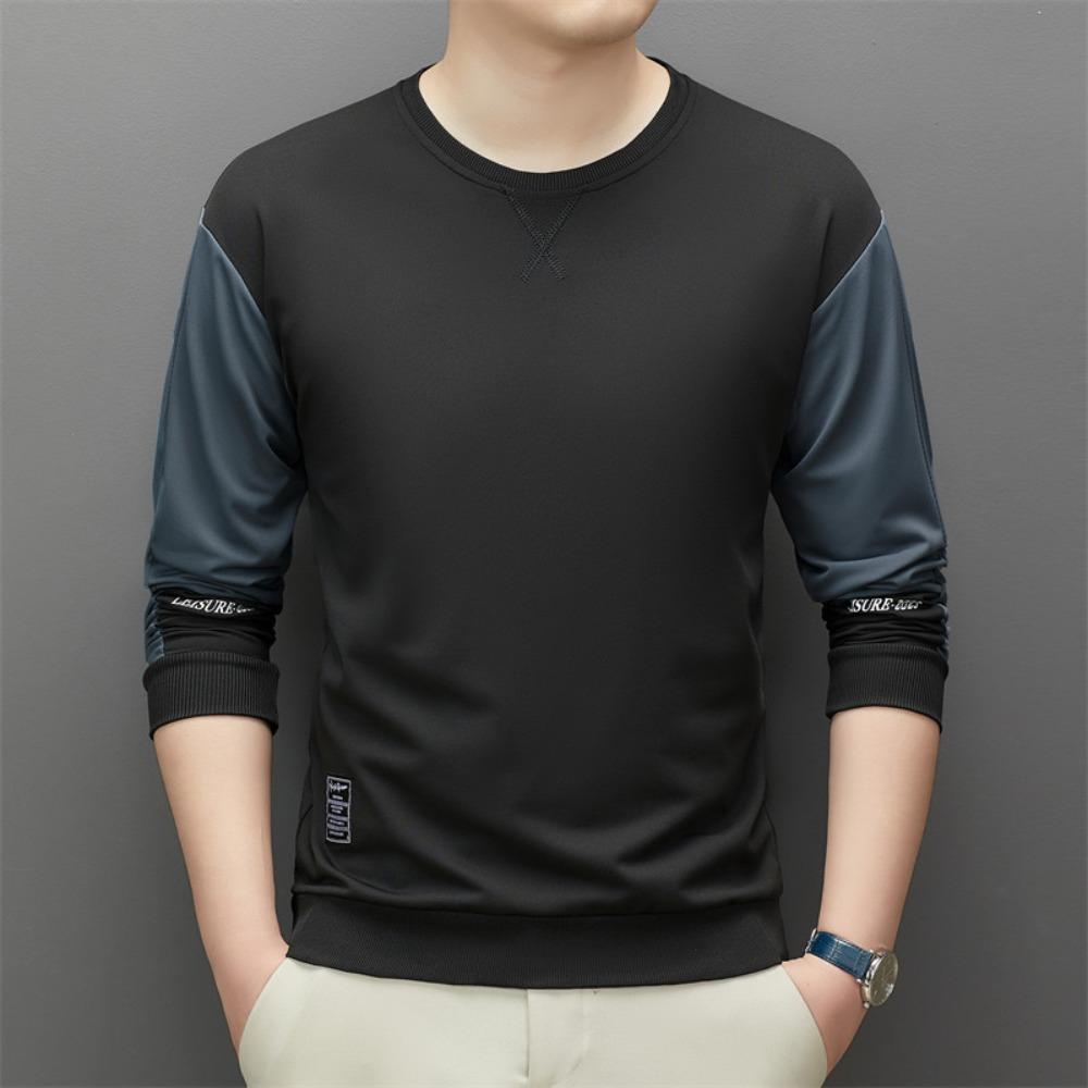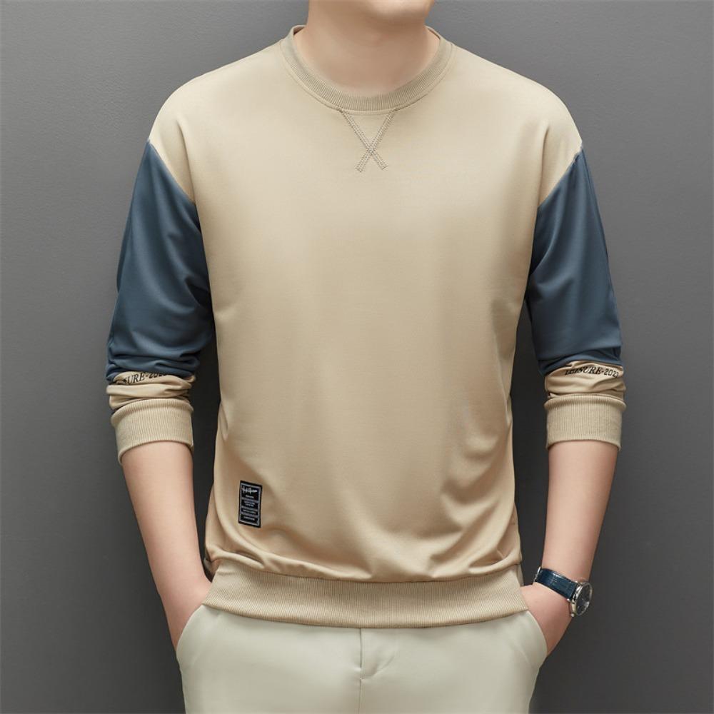 Универсальные топы на весну и осень, свободная рубашка с длинными рукавами, мужская повседневная рубашка с низом, мужская толстовка с круглым вырезом