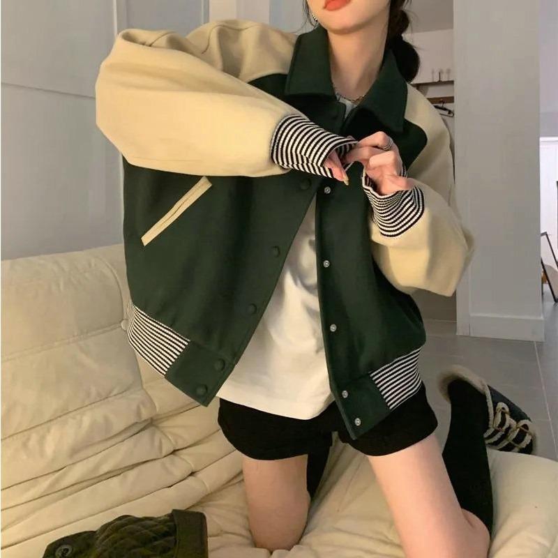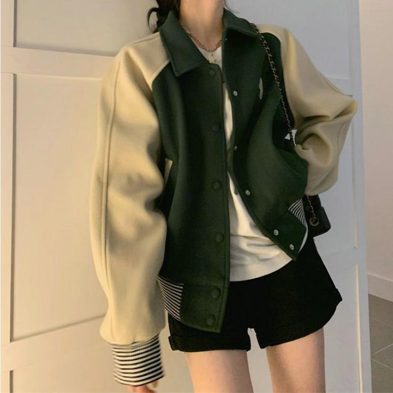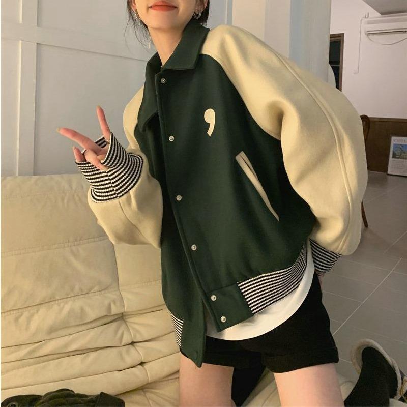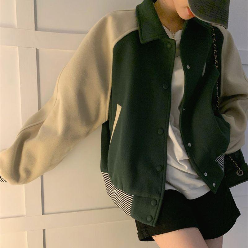 Американская ретро бейсбольная форма куртка для женщин начало осени новый контрастный цвет дизайн повседневная куртка верхняя часть для невысоких людей