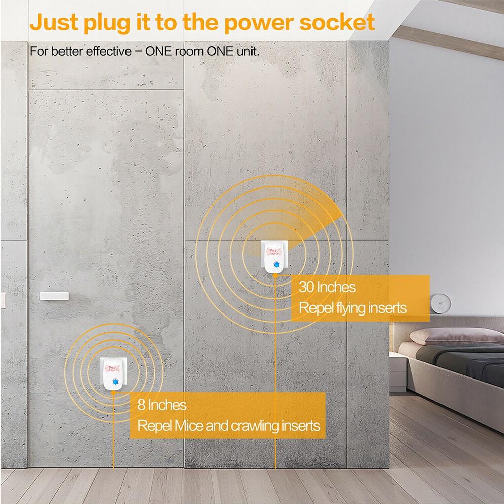 ЛЕГКО ИСПОЛЬЗОВАТЬ: Подключите обычную розетку, и тогда загорится синий свет. На этот раз машина начала работать, и наблюдать, как вредители уходят! Пожалуйста, установите наши предметы на розетку на 20 ~ 30 см от пола.