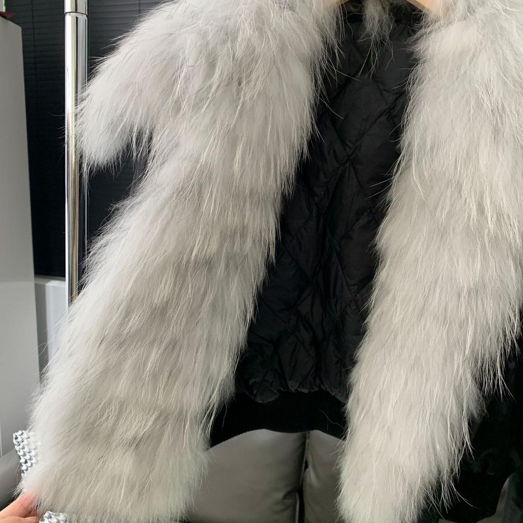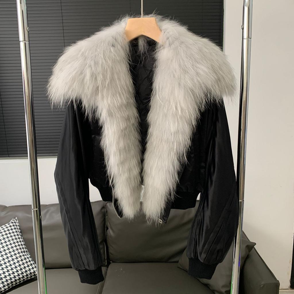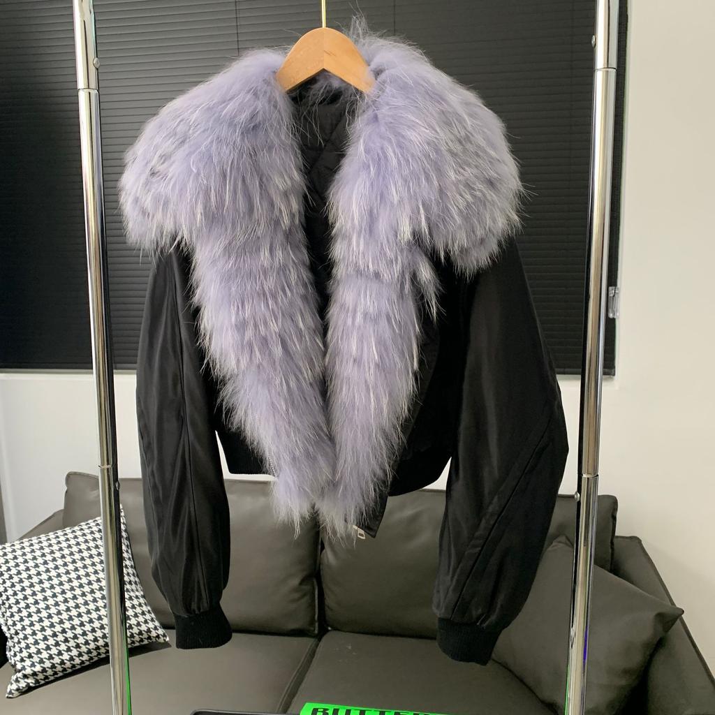 Мех енота меховая шуба с высокой талией летный костюм женский большой меховой воротник пуховик новый стиль