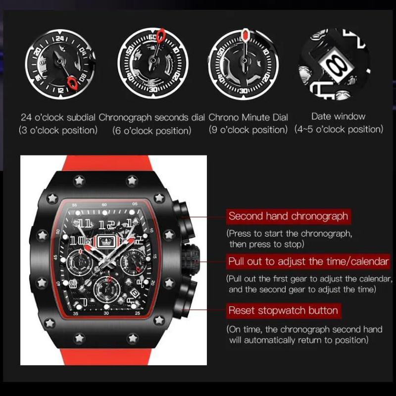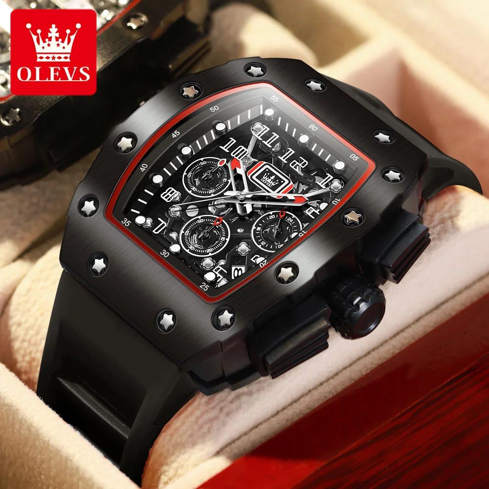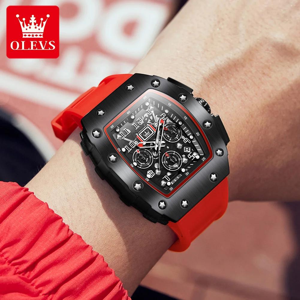 OLEVS Силиконовый ремешок водонепроницаемые мужские наручные часы в форме бочки большой циферблат спортивные кварцевые часы светящийся хронограф календарь часы