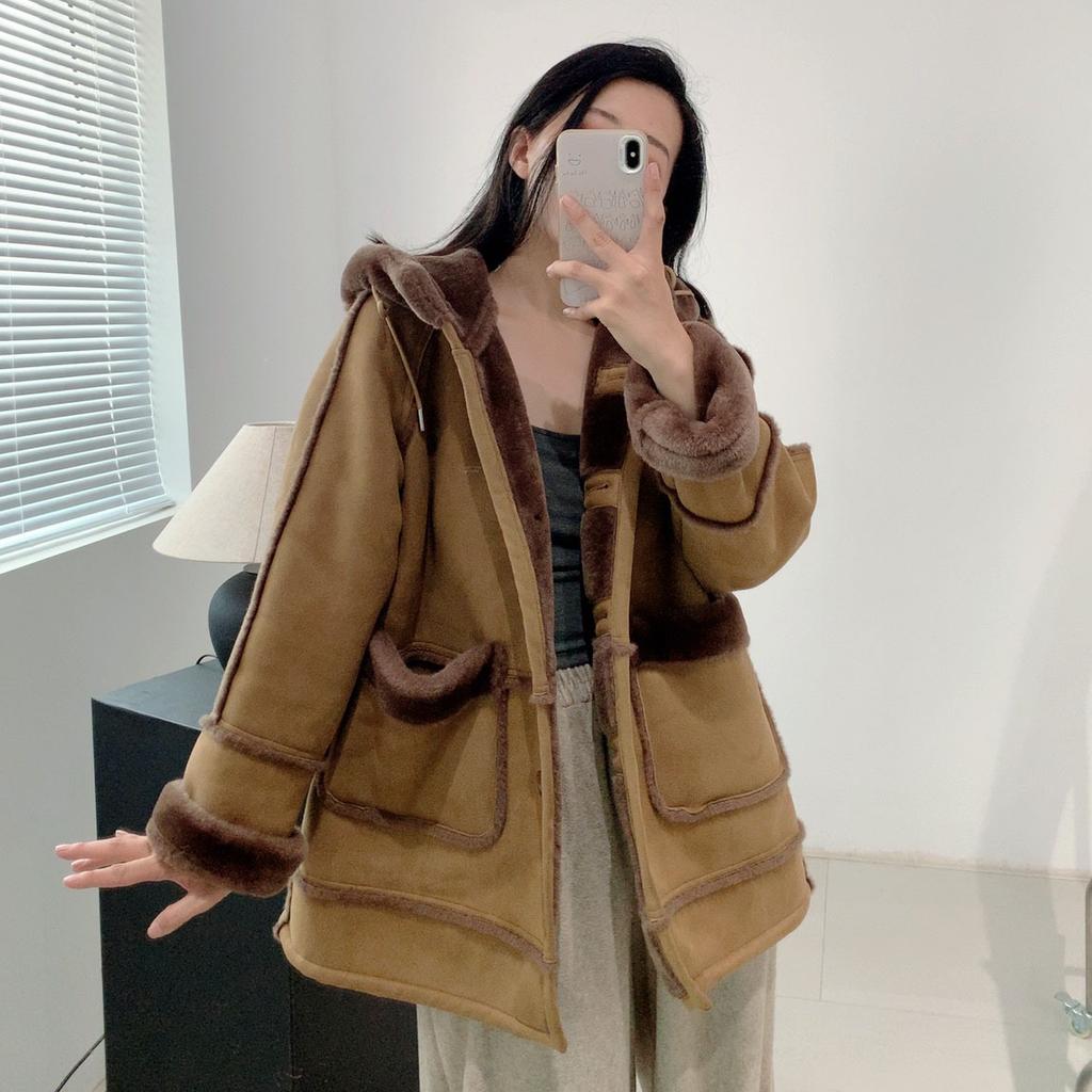 Пальто из овечьей шерсти, женское, с интегрированным мехом, новое зимнее утолщенное пальто из высококачественной замши