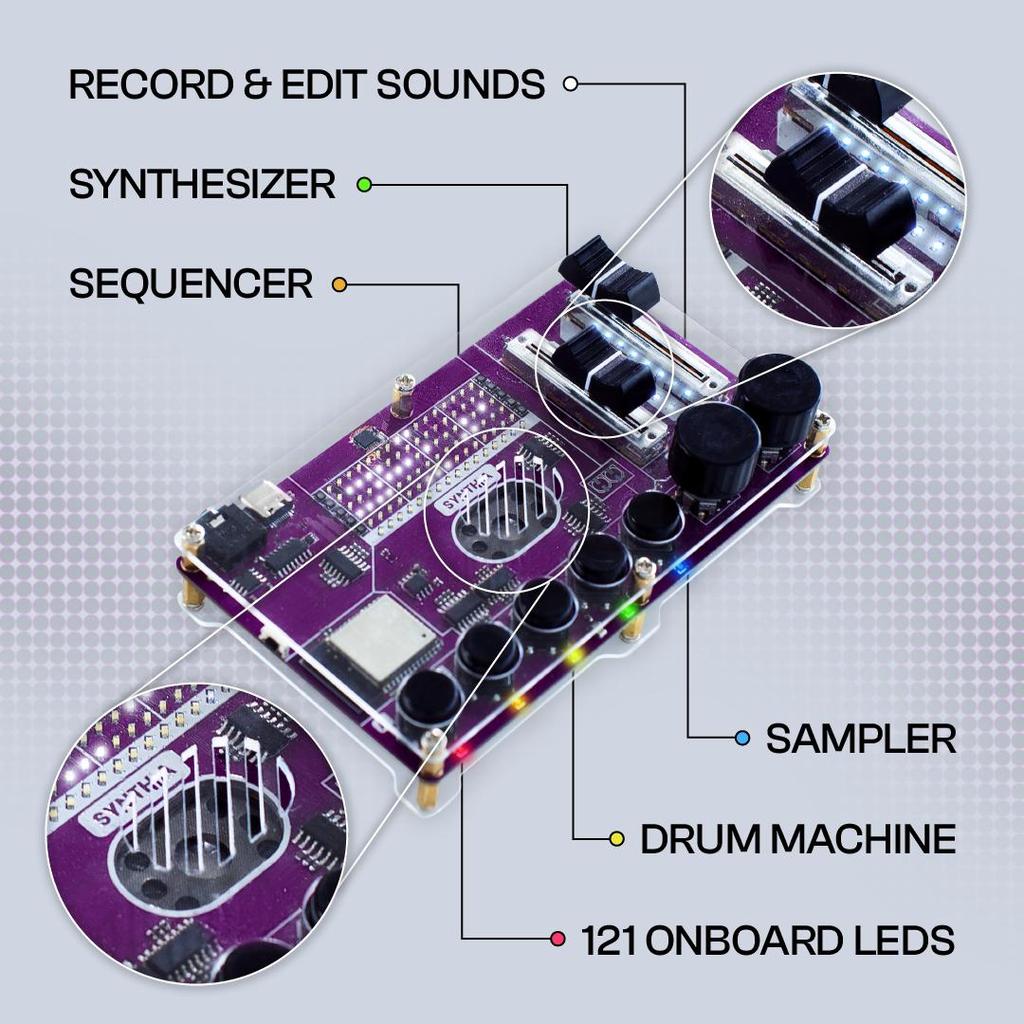 Synthia is a DIY synthesizer that lets you create and customize your own electronic music. Build this powerful device from scratch and dive into the world of sound waves, oscillators, and synth programming. With Synthia, you can: