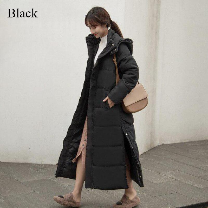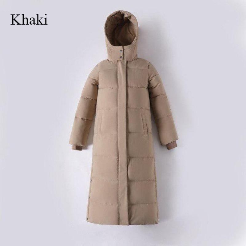 Длинная теплая куртка-пуховик выше колена с капюшоном, толстое ветрозащитное зимнее пальто 2024 года, женская однотонная повседневная приталенная куртка с хлопковой подкладкой