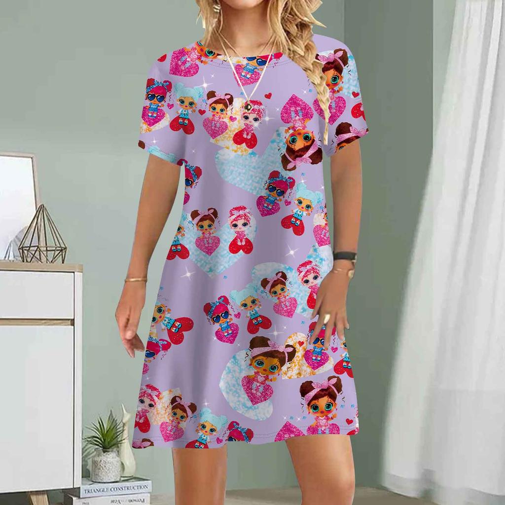 Женское повседневное платье, летнее черное платье с принтом для девочек, женское платье с круглым вырезом и коротким рукавом, размер плюс