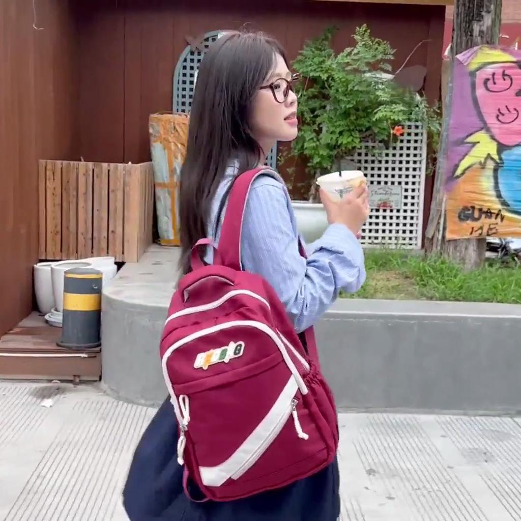 Студенческая школьная сумка женская большая емкость контрастный цвет рюкзак