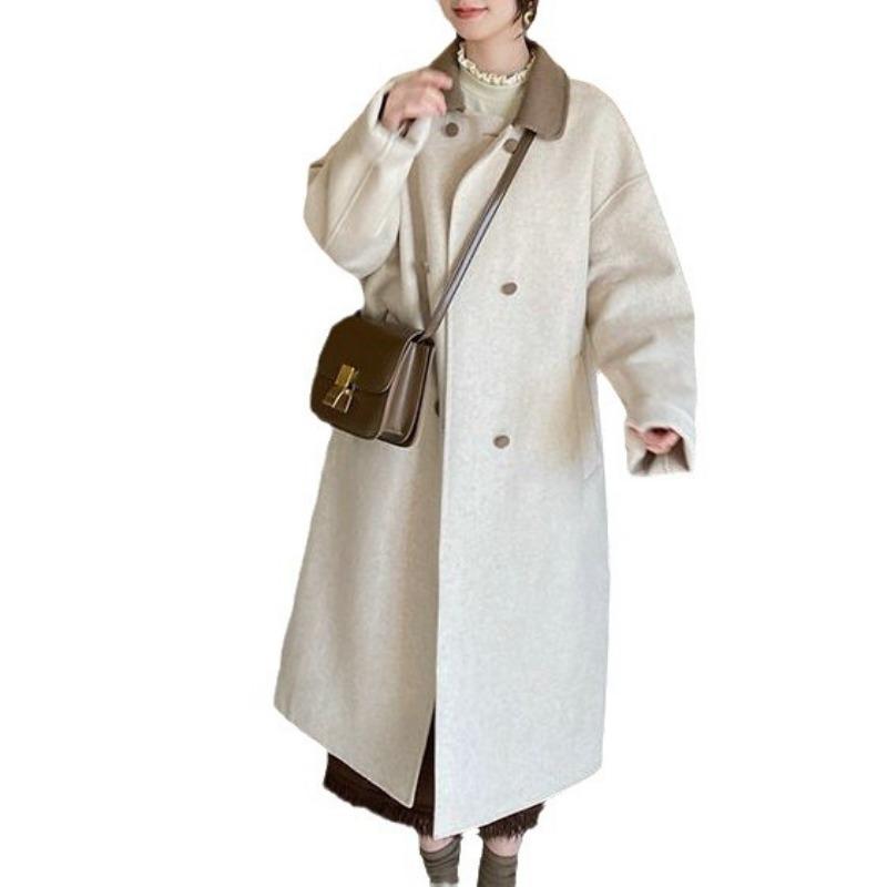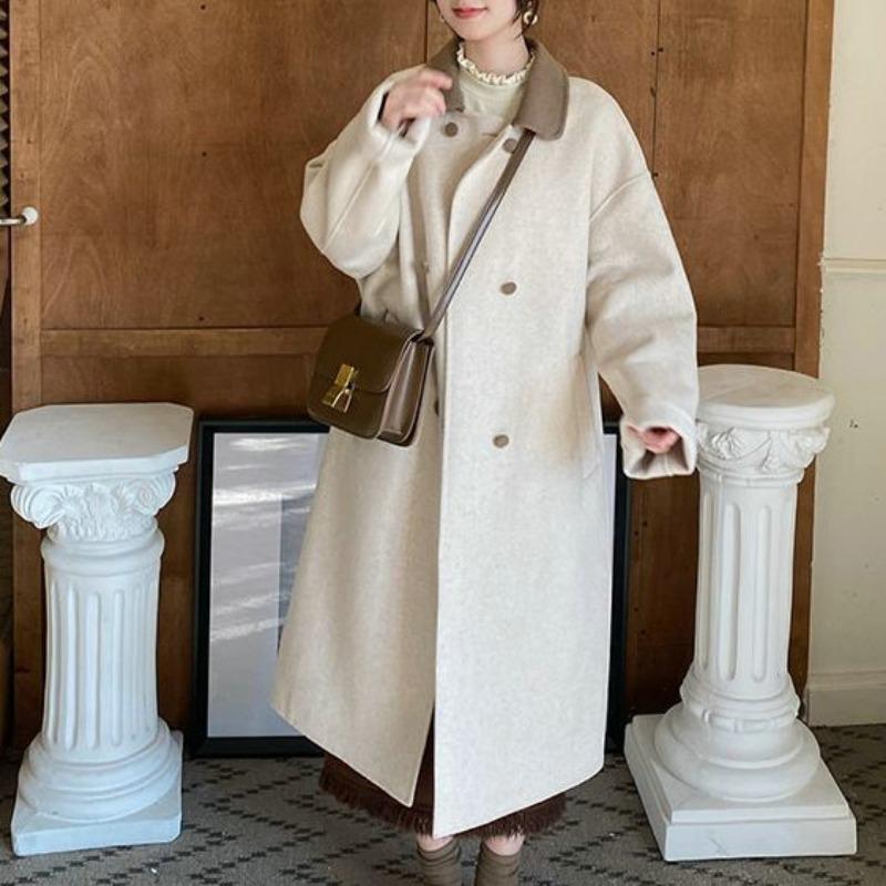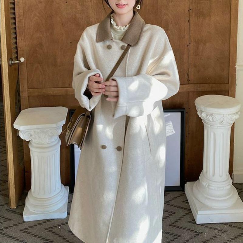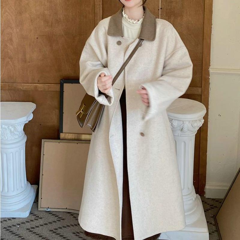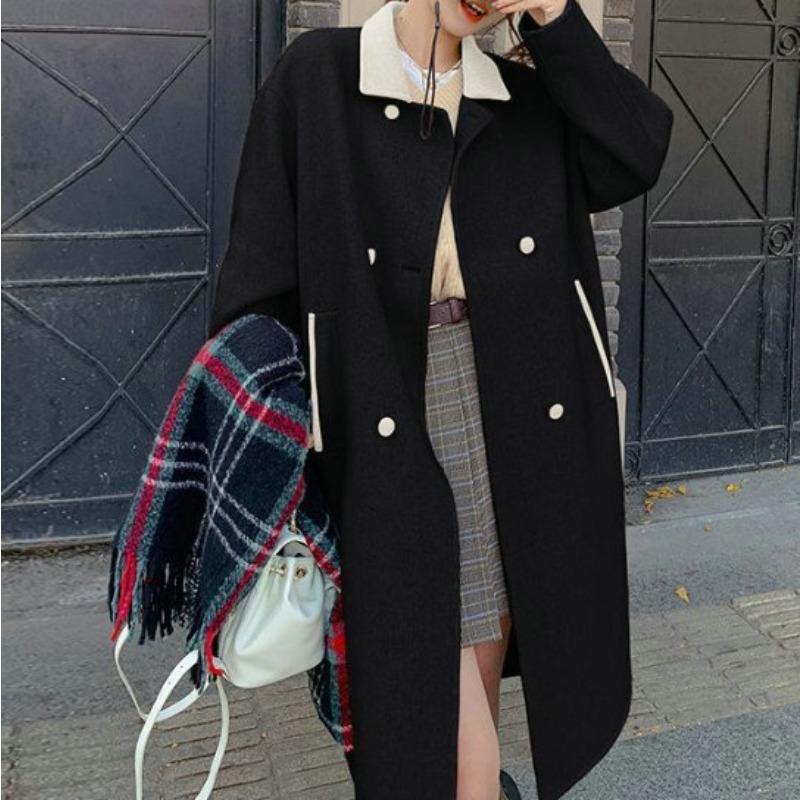 Высококачественное маленькое шерстяное пальто для женщин на зиму, свободное шерстяное пальто средней длины до колена в корейском стиле