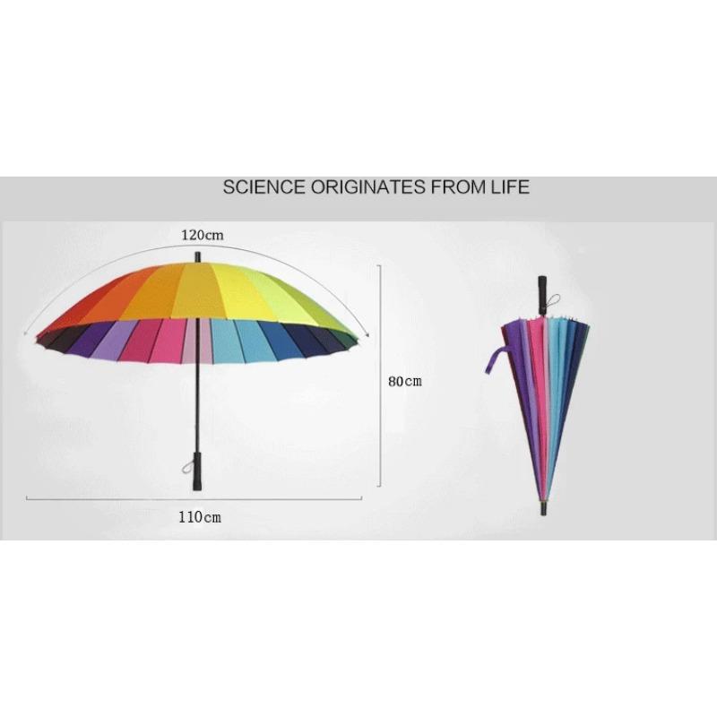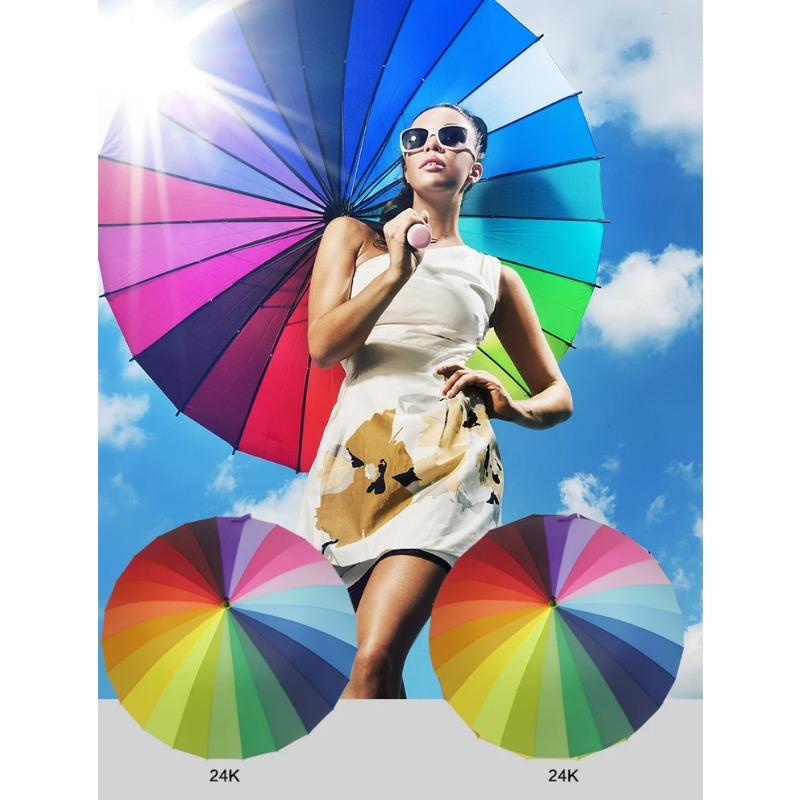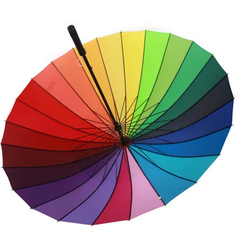 Модный женский зонтик Радужный зонтик с большой длинной ручкой, прямой красочный зонт, женский солнечный и дождливый зонт с ребрами 24 к