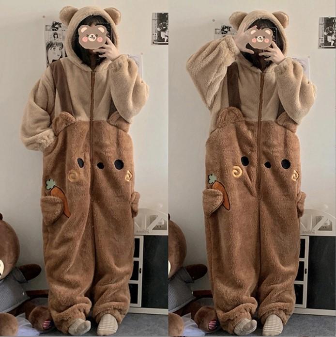 Фланель Аниме Взрослые Пижама Животных Пижамный Комплект Женщины Косплей Хэллоуин Мультфильм Пижама Взрослые Зима Медведь Пижамы Рождество