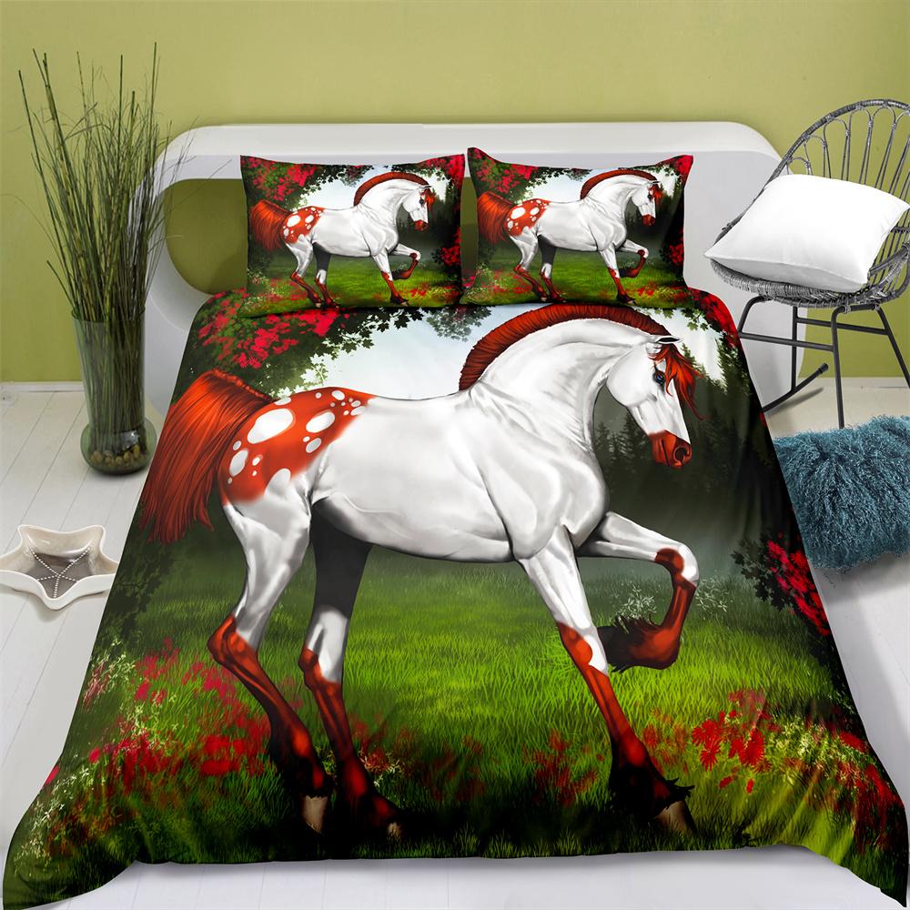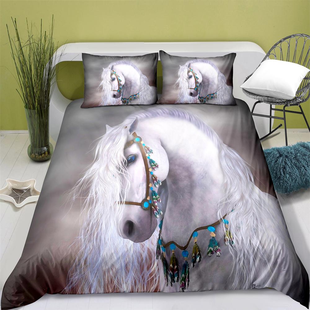 Комплект постельного белья с изображением лошади, 3D-принт с изображением белой лошади, комплект постельного белья с изображением дикой природы, размер King Size, 2/3 шт., покрывало для детей, мальчиков и мужчин