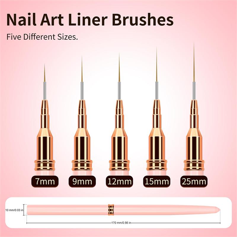 Набор из 5 кистей для лайнера для росписи ногтей, тонкие кисти-лайнеры для ногтей, набор кистей для лайнера для ногтей