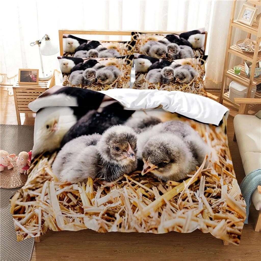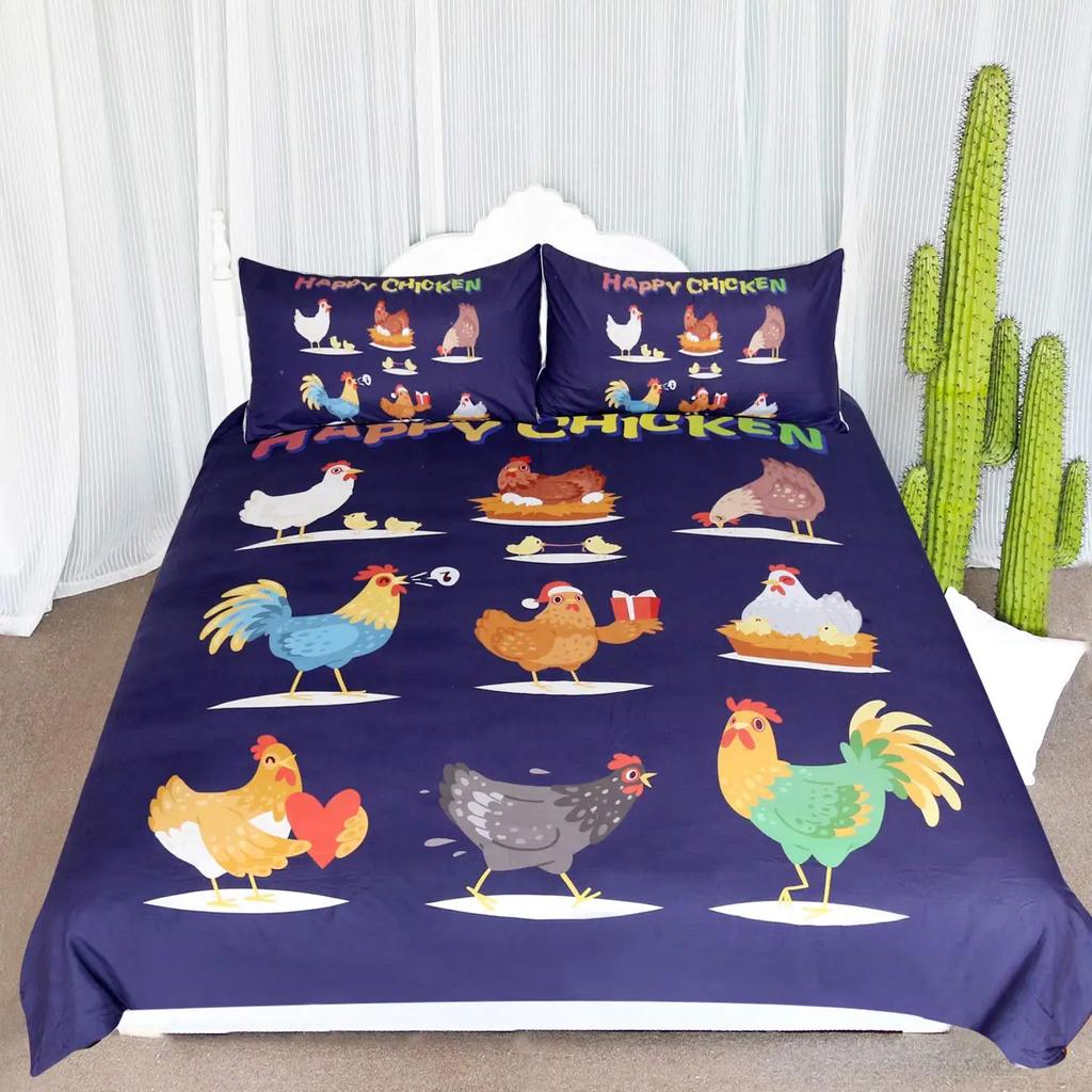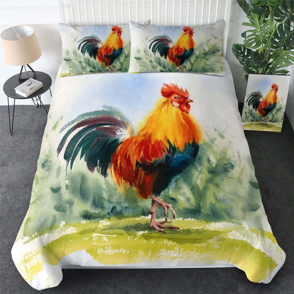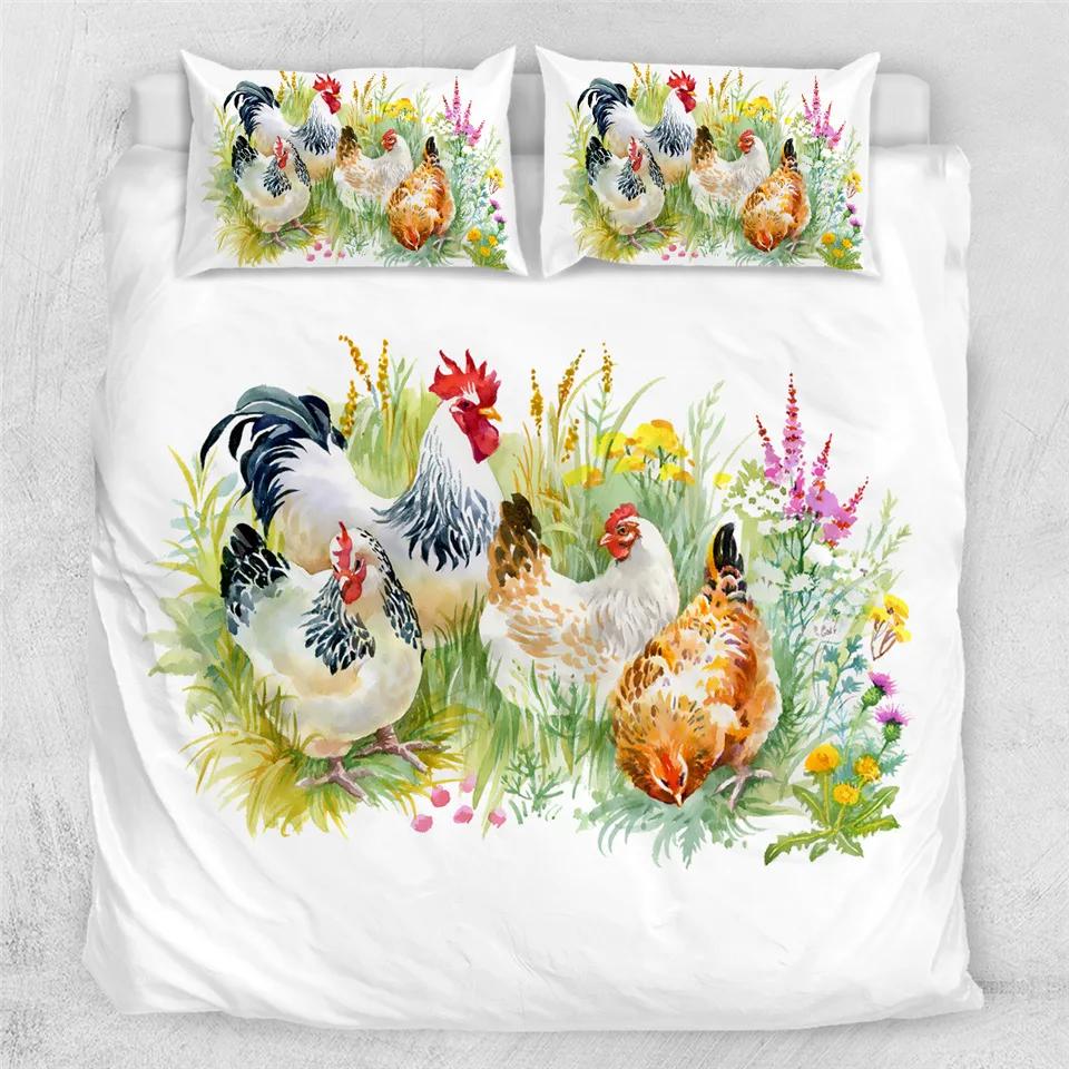 Пододеяльник с изображением курицы размера King Queen и акварельного петуха для детей, подростков и взрослых, одеяло из полиэстера с изображением сельскохозяйственных животных