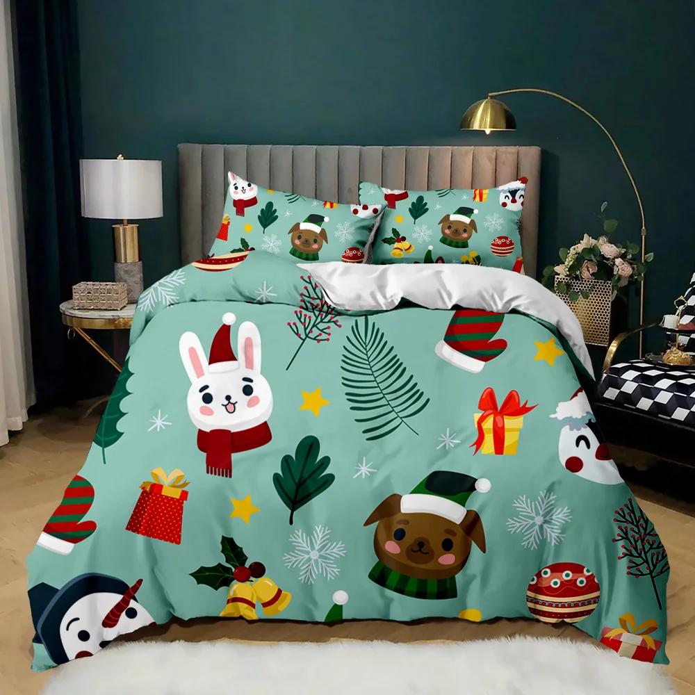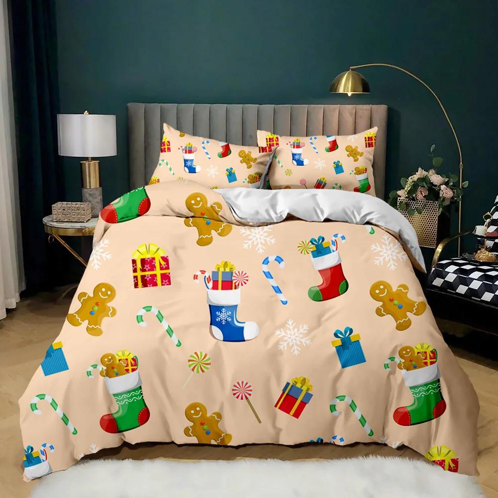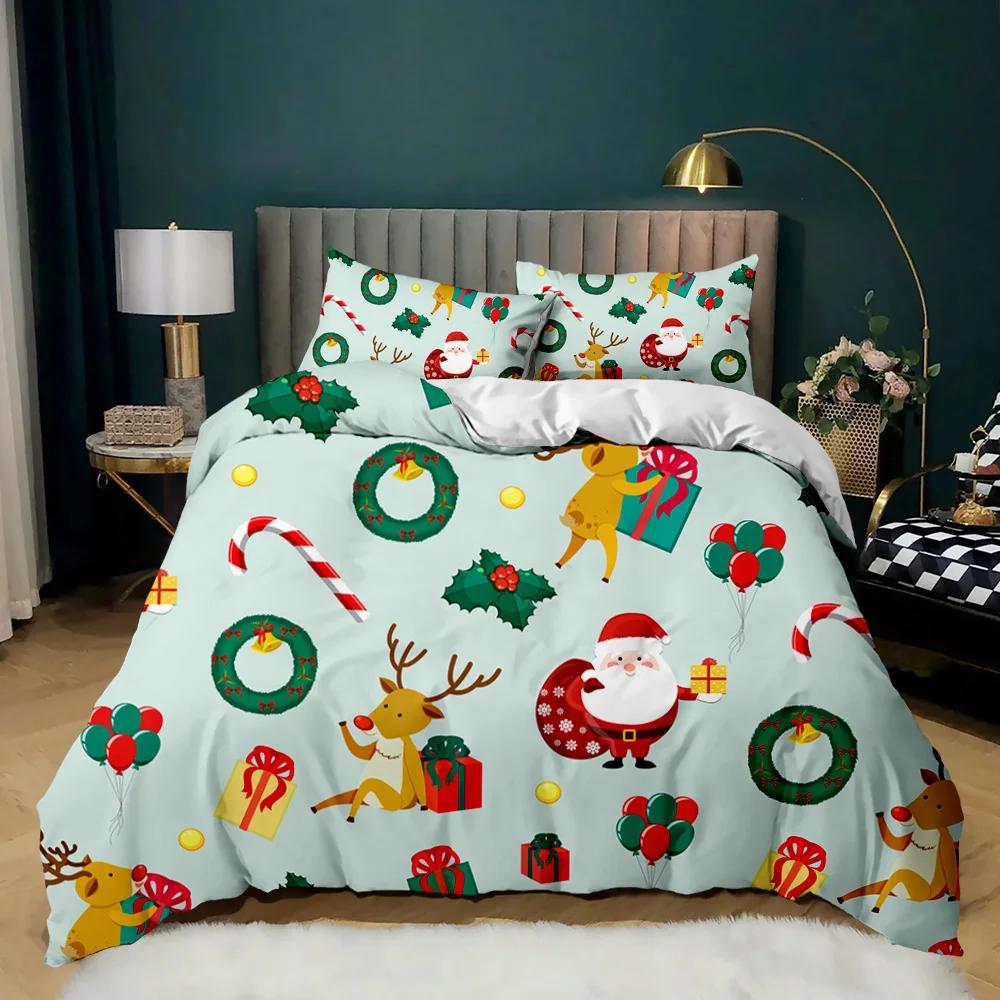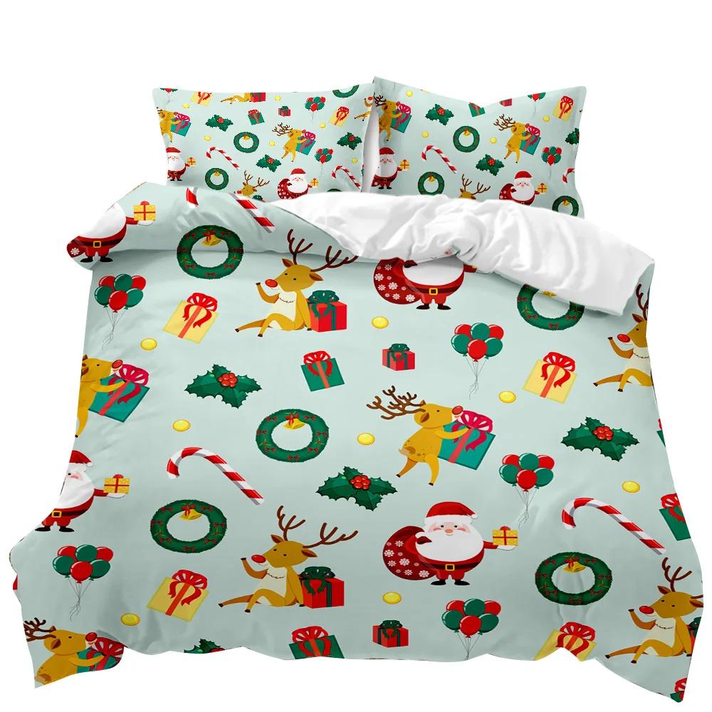 Рождественский комплект постельного белья с принтом Санта-Клауса и оленей Счастливого Рождества Рождественский комплект одеяла из полиэстера Мягкое постельное белье