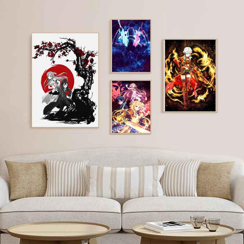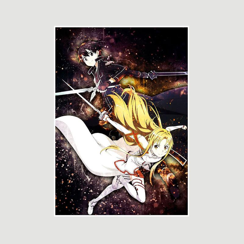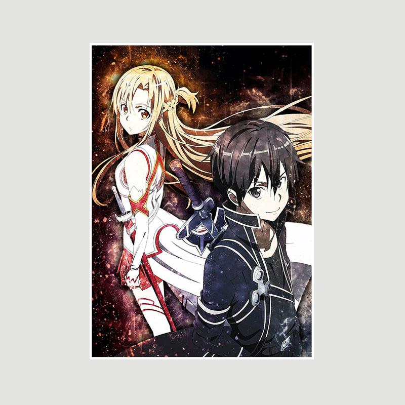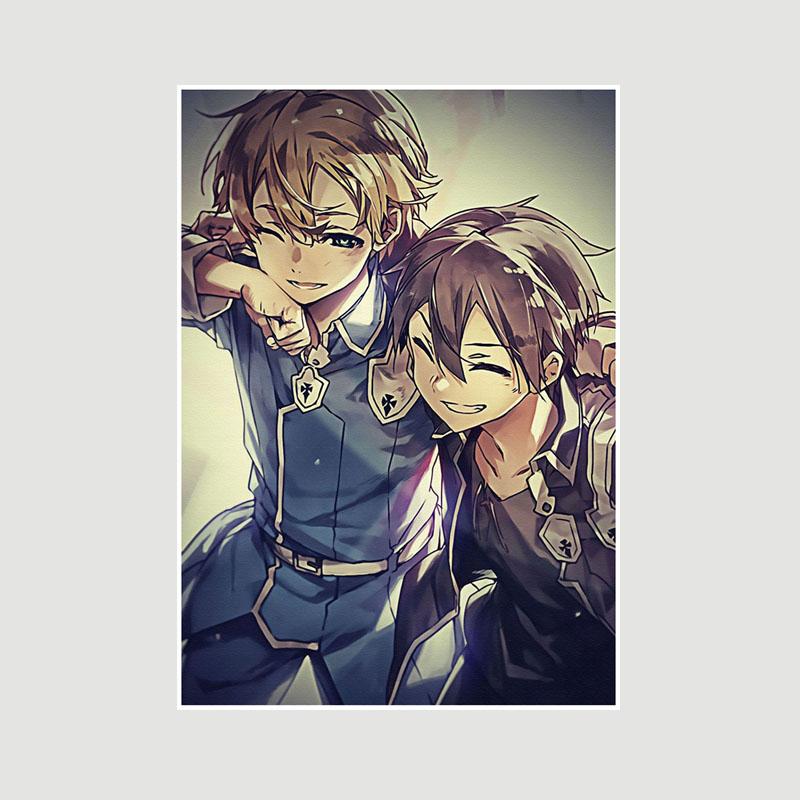 Японский аниме Sword Art Online Плакат Ретро Белые бумажные постеры Фреска Настенная живопись Домашний декор Гостиная Бар Кафе Украшение Картина