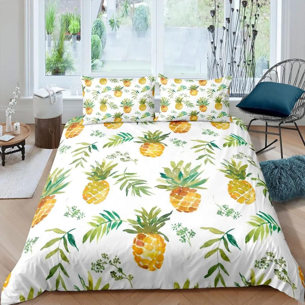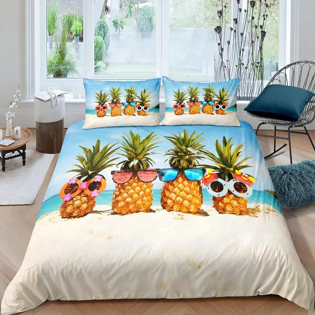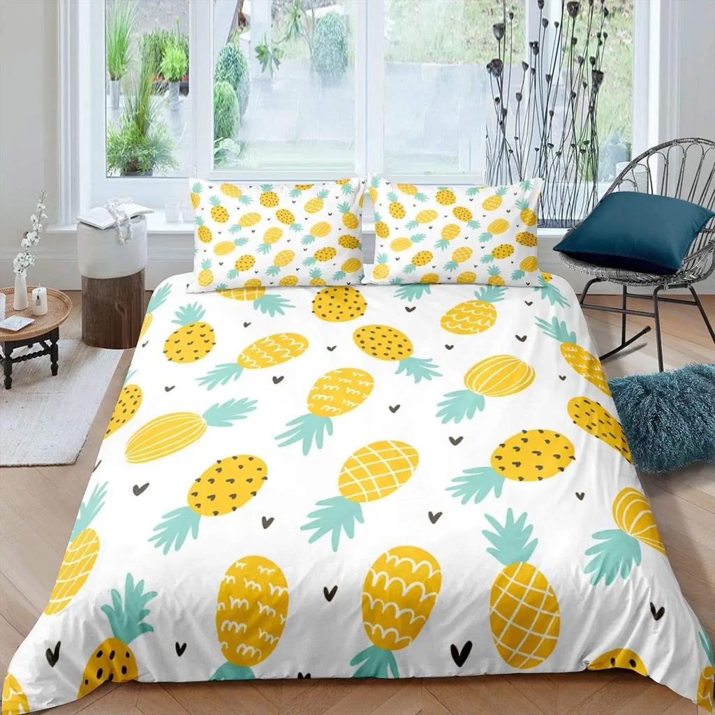 Комплект постельного белья с рисунком ананаса, размер King, желтый, геометрический, с рисунком ананаса, наволочка с принтом фруктов и морем