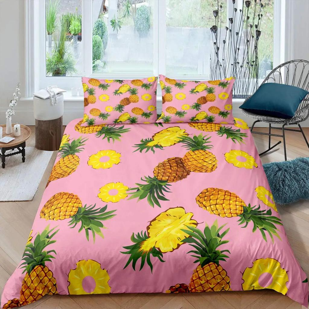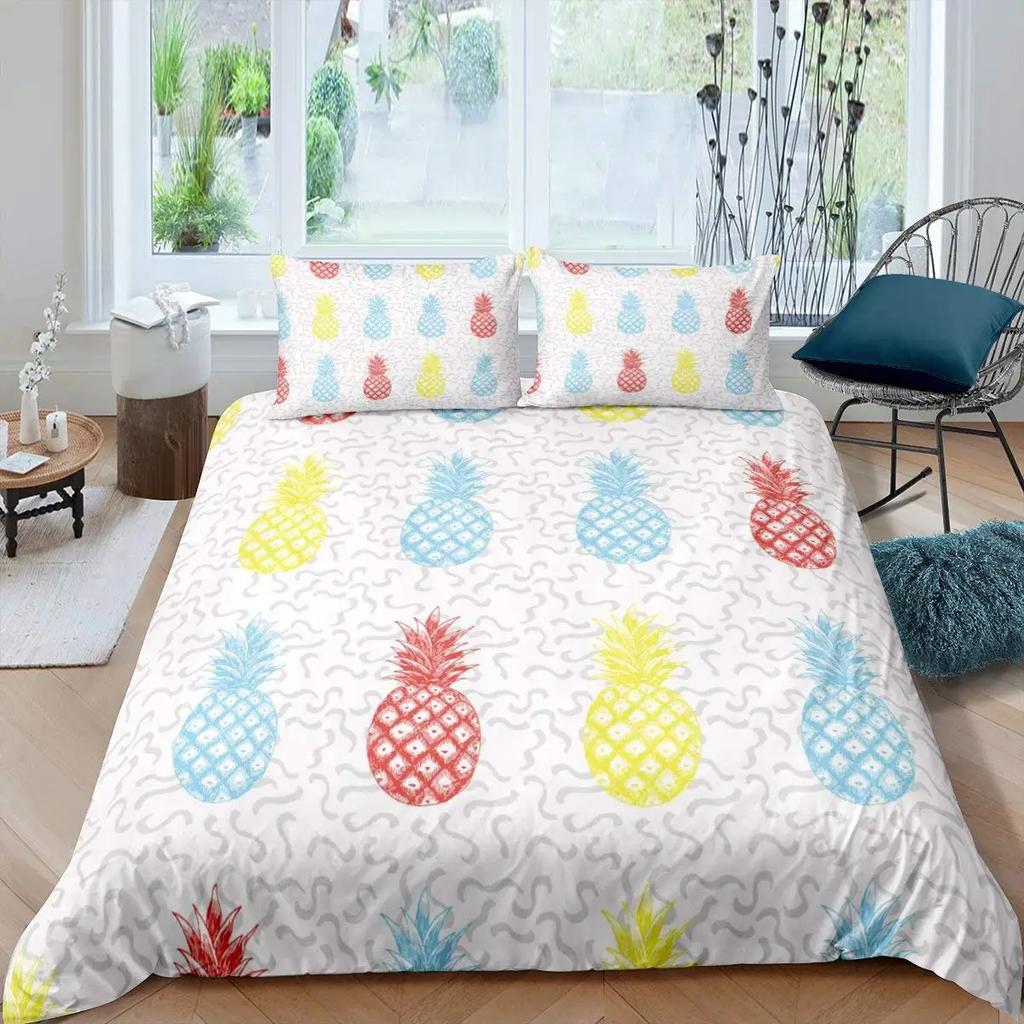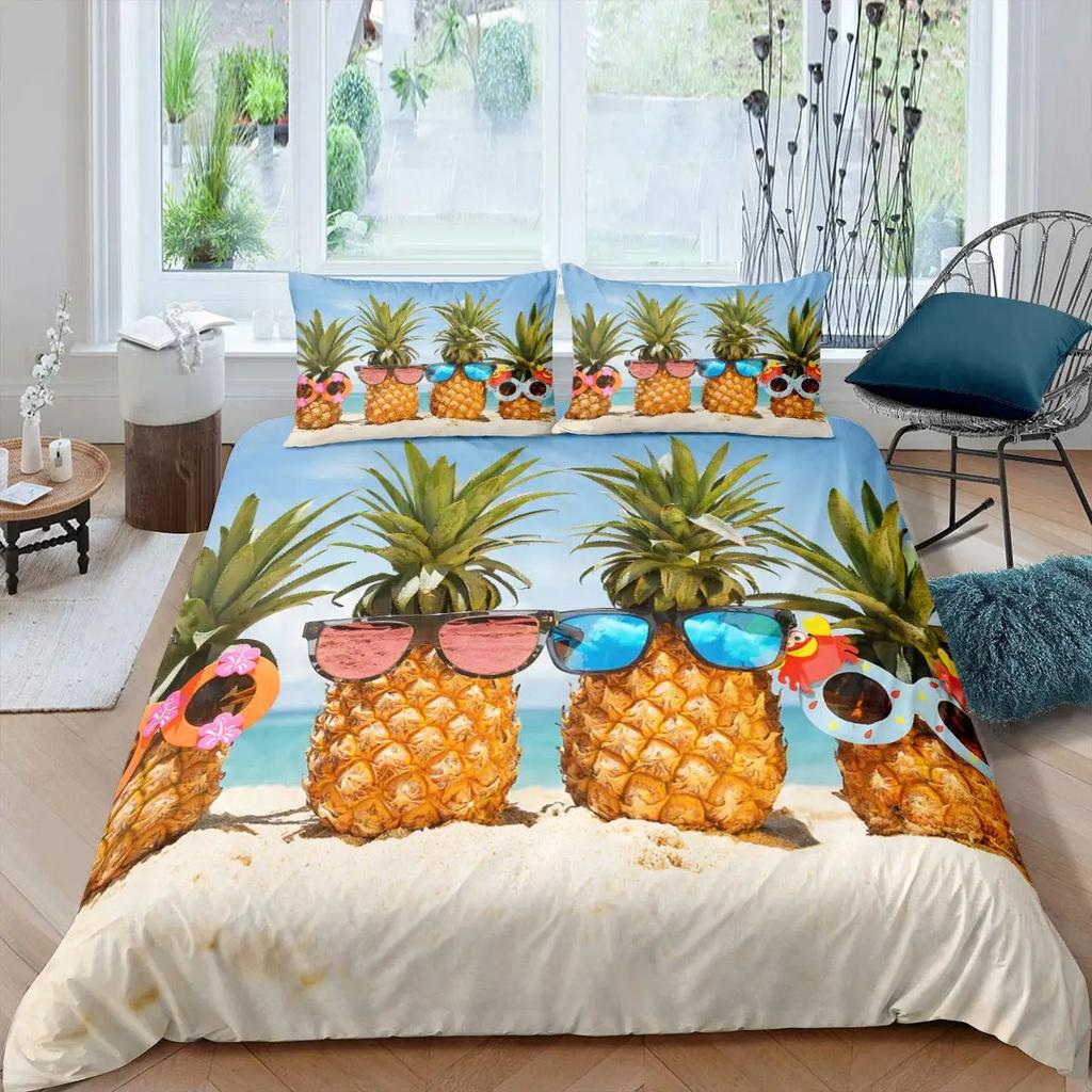 Комплект постельного белья с рисунком ананаса, размер King, желтый, геометрический, с рисунком ананаса, наволочка с принтом фруктов и морем