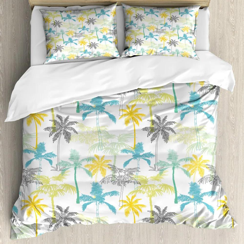 Комплект постельного белья в гавайском стиле с экзотическими цветочными мотивами на тему тропических гавайских цветов Комплект постельного белья из полиэстера с двуспальной кроватью размера «queen-size» и размером «king-size»