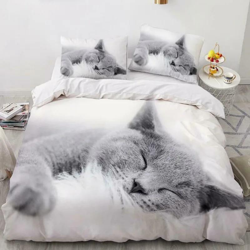 Комплект пододеяльников с изображением кошек, размер Queen, милый питомец, напечатанный на пододеяльнике для детей, мальчиков и девочек, 3D-покрывало из полиэстера с изображением животных из мультфильма — купить товар онлайн с бесплатной доставкой по всему миру!