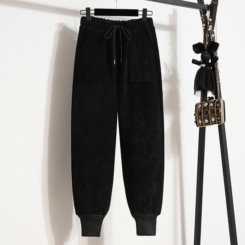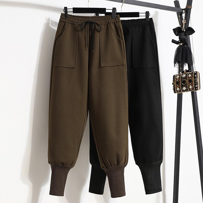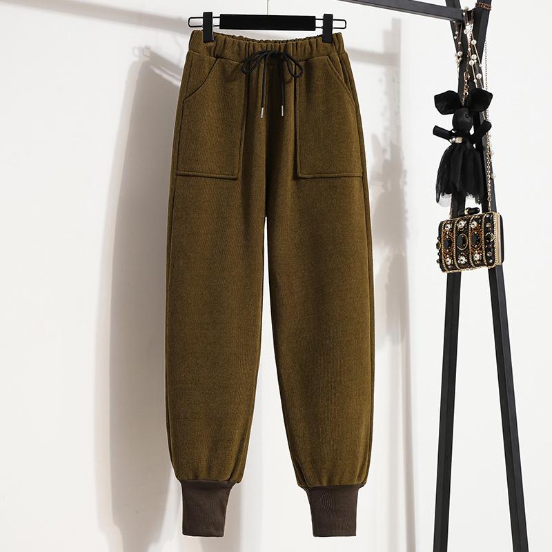 Женские утепленные повседневные брюки свободного кроя с завязками на средней талии, осенне-зимние, большого размера