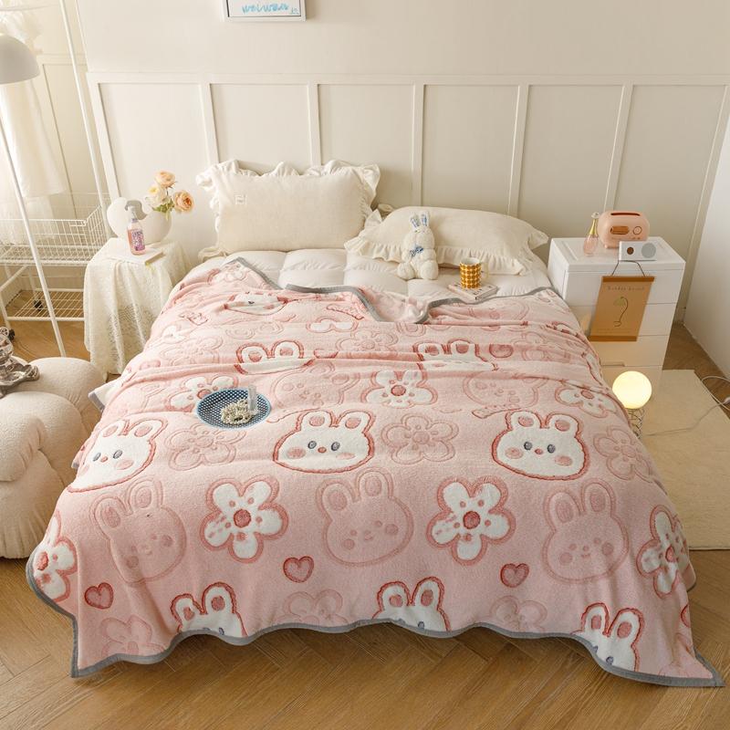 Мультяшный кролик, цветочный романтический узор с сердечками, одеяло, мягкое, легкое, теплое, уютное, плюшевое одеяло для постельного белья, дивана, подарка