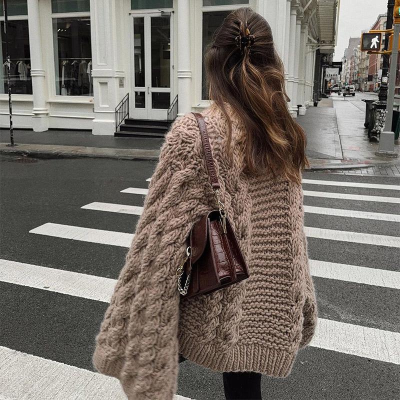 Свободный вязаный свитер женский повседневный модный пуловер с круглым вырезом свободного размера женский 2024 осень-зима женский однотонный универсальный джемпер